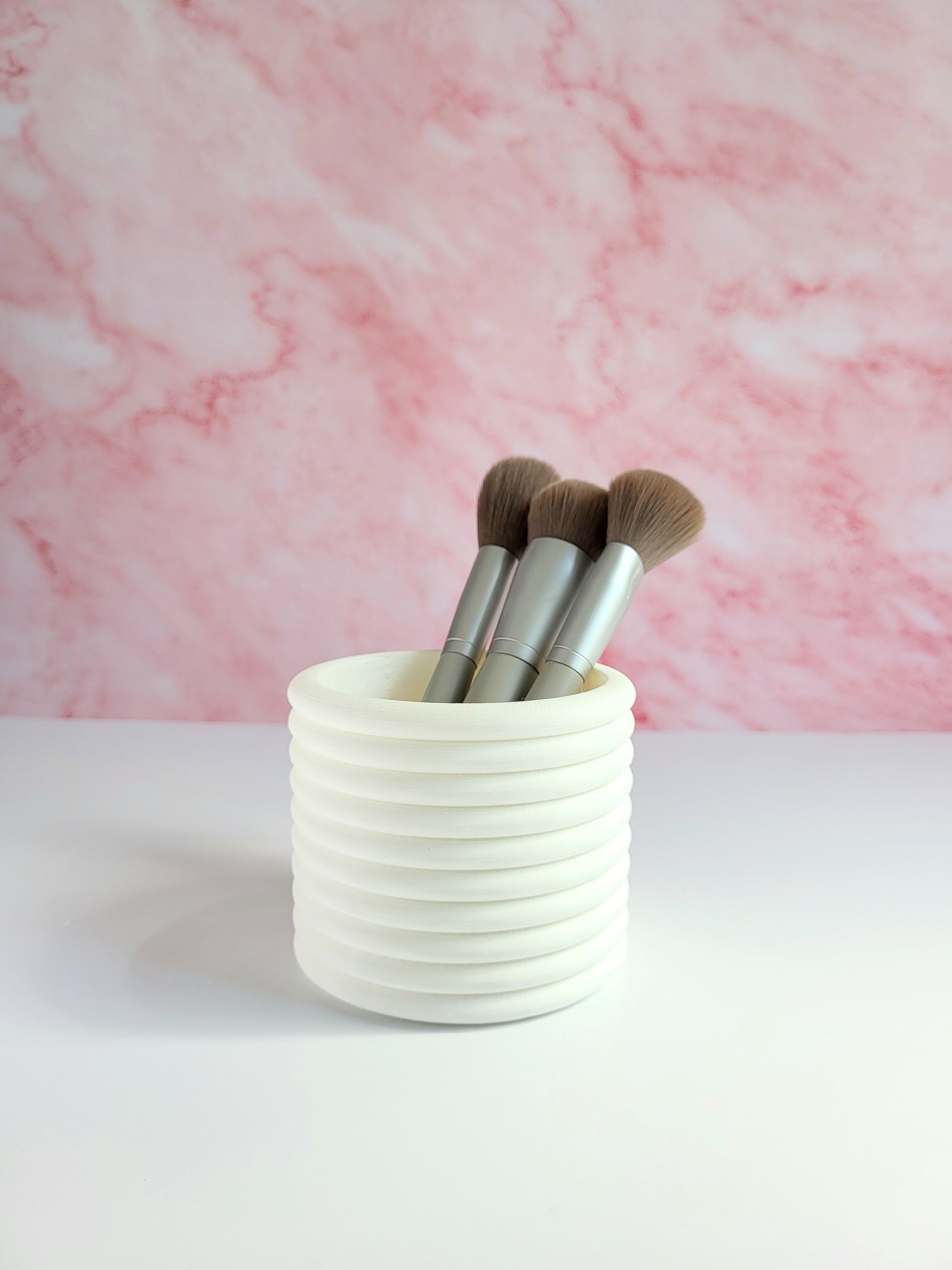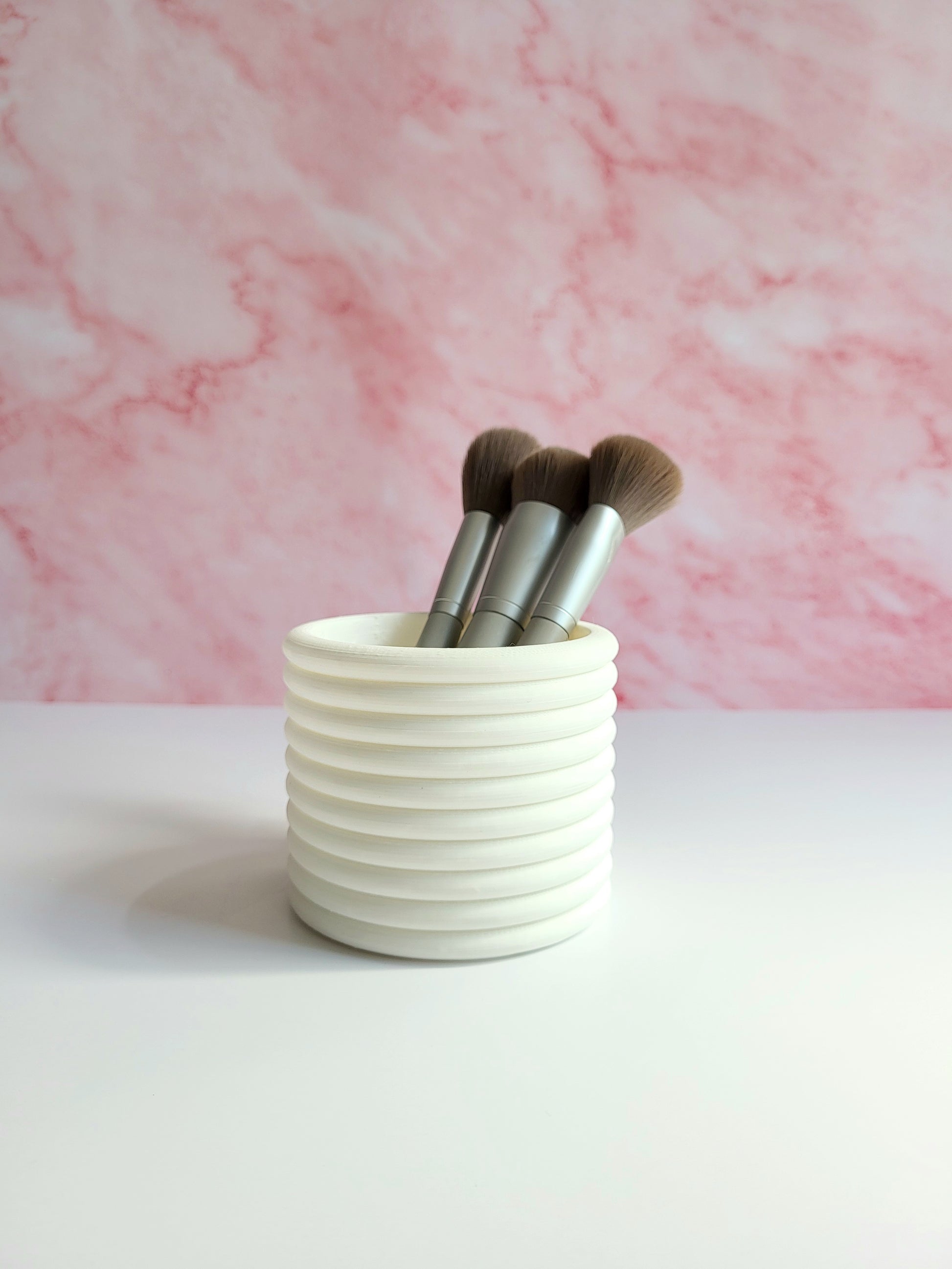 Add modern style and smart organization to your bathroom or vanity with this sleek bathroom holder. Designed with a clean vertical pipe-inspired texture, it’s perfect for holding toothbrushes, makeup brushes, or other small essentials while keeping your space tidy and elegant.