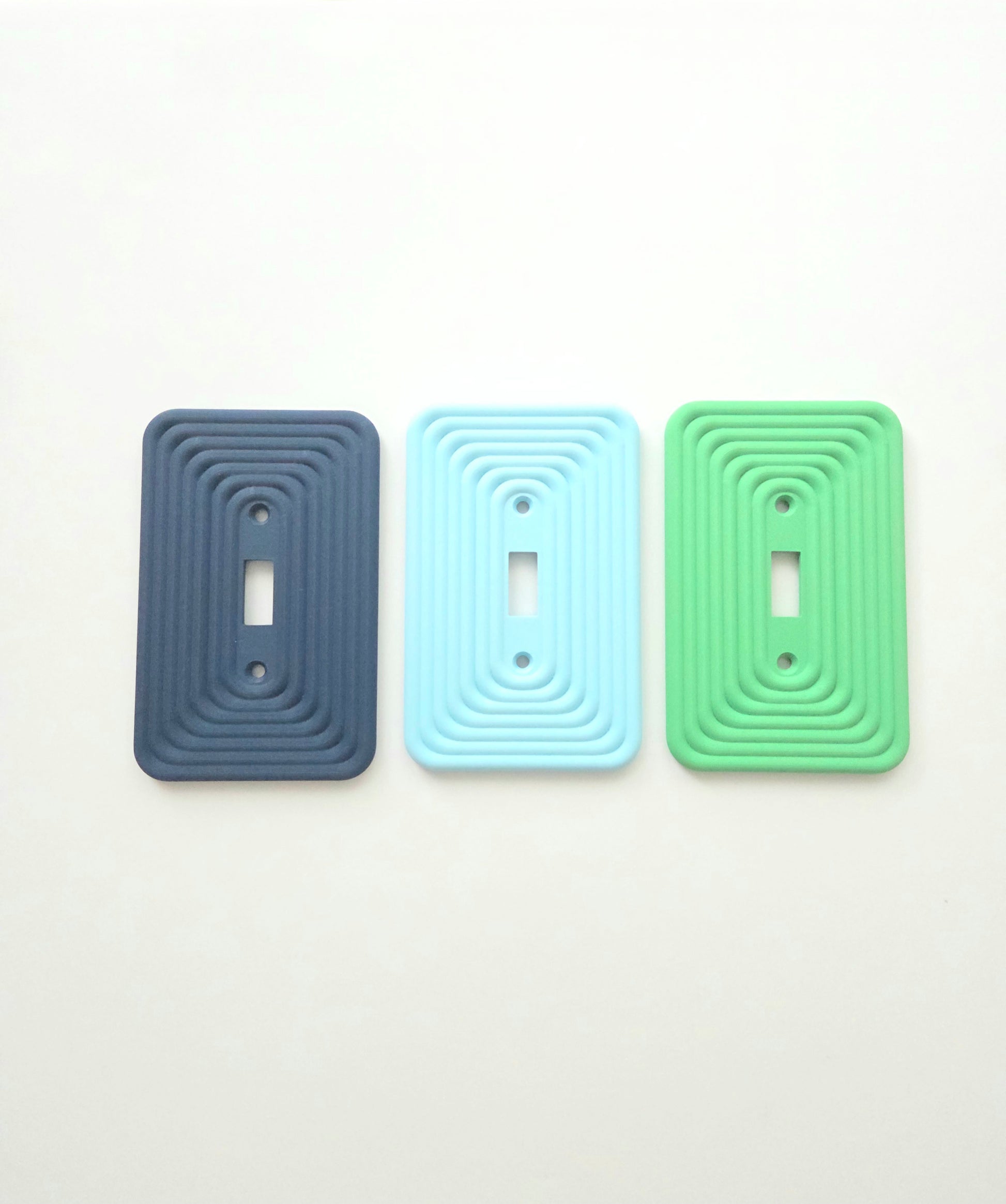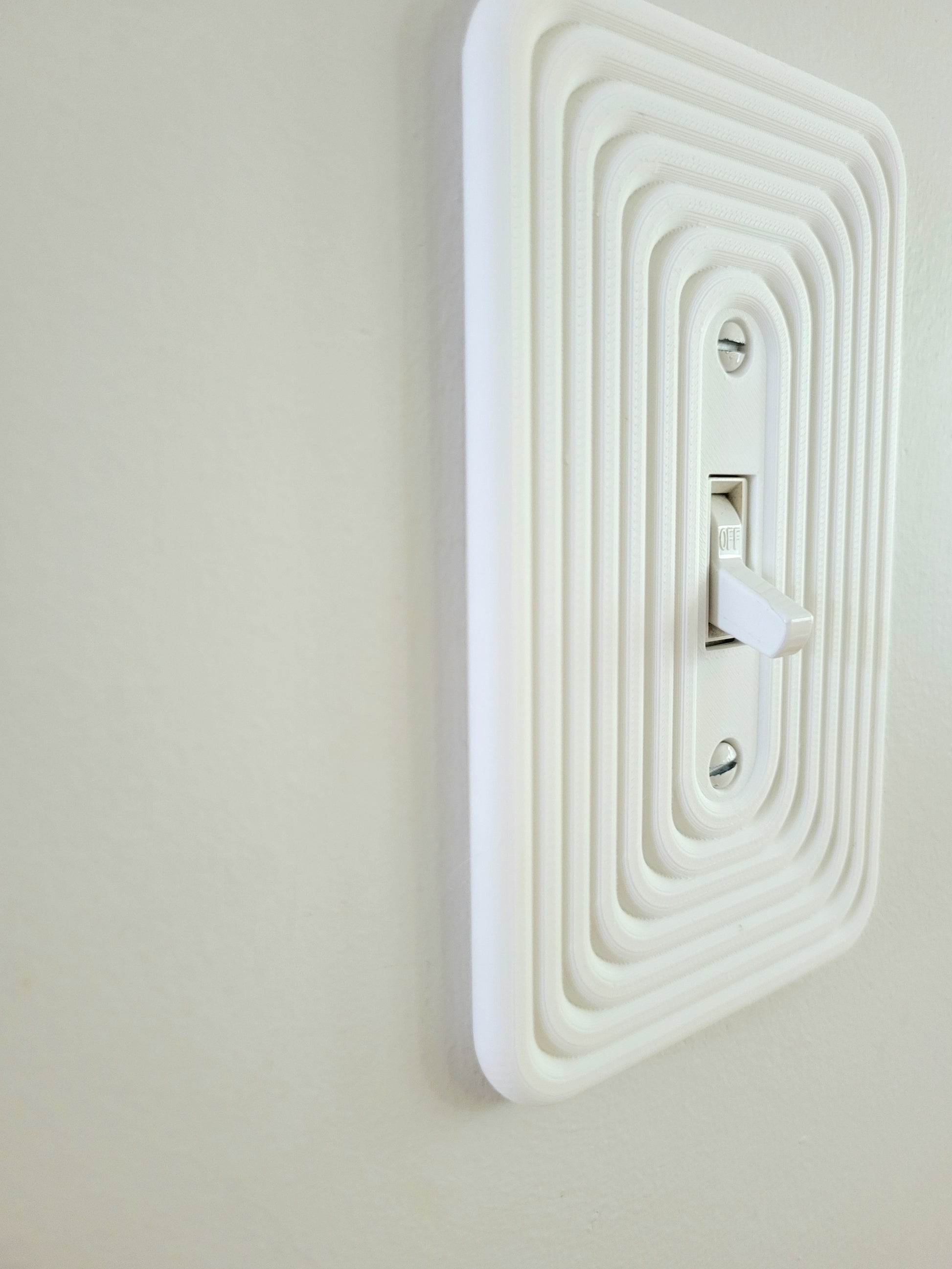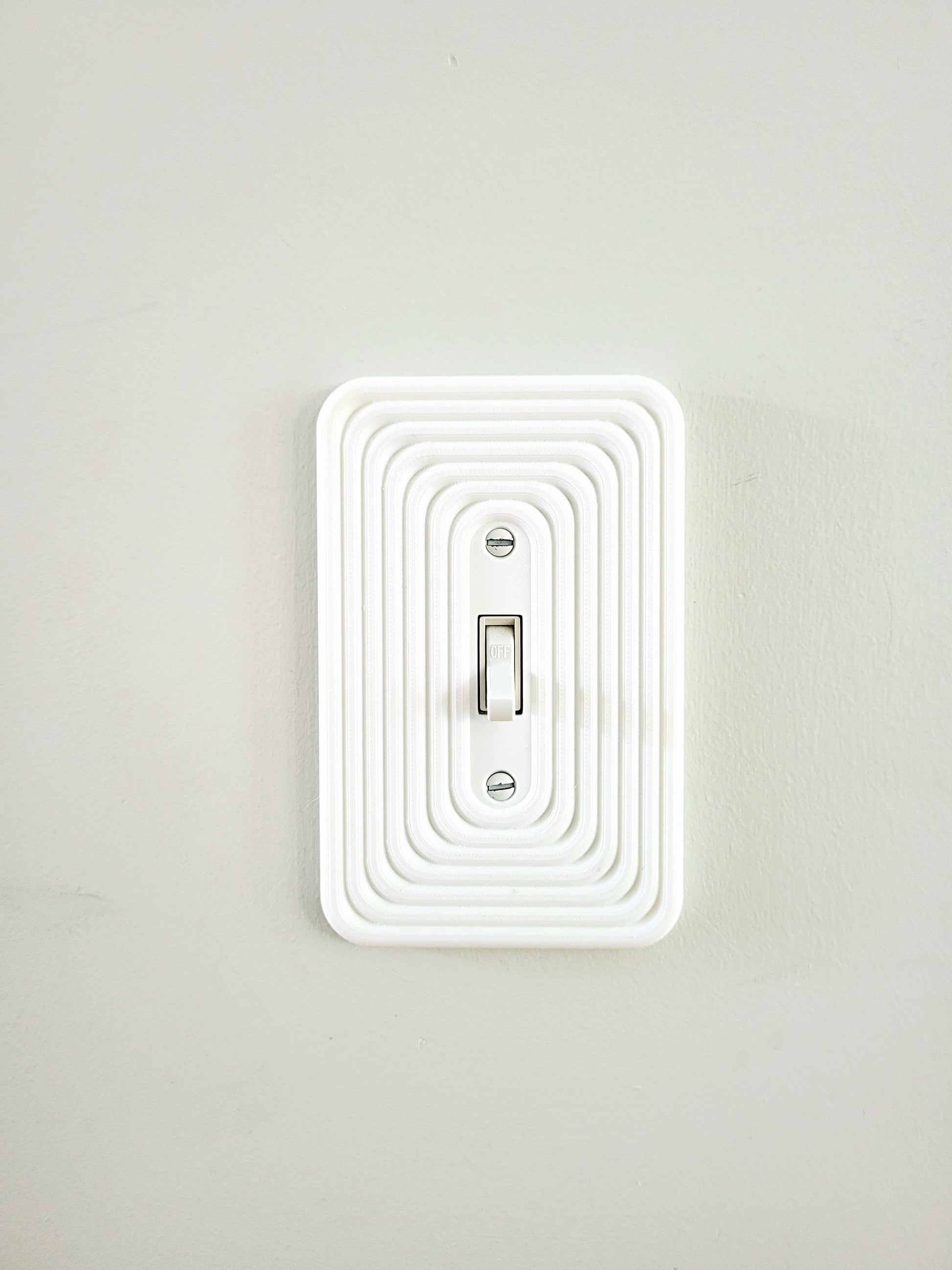 Elevate your walls with this modern light switch plate cover, designed to transform an everyday detail into a bold design statement. With its layered geometric pattern and soft rounded edges, this switch plate adds texture and architectural style to any space — from sleek minimalist homes to mid-century modern interiors.