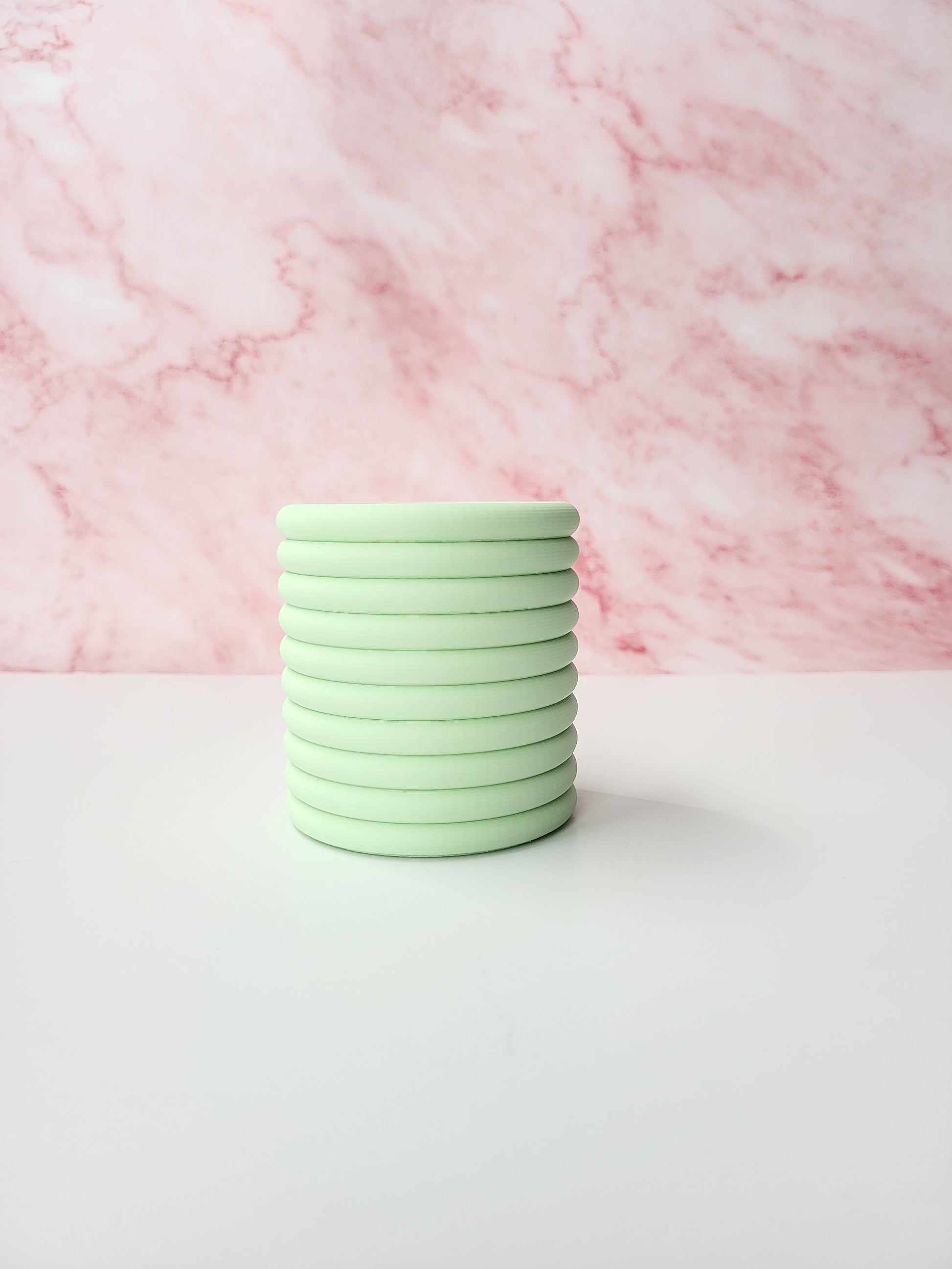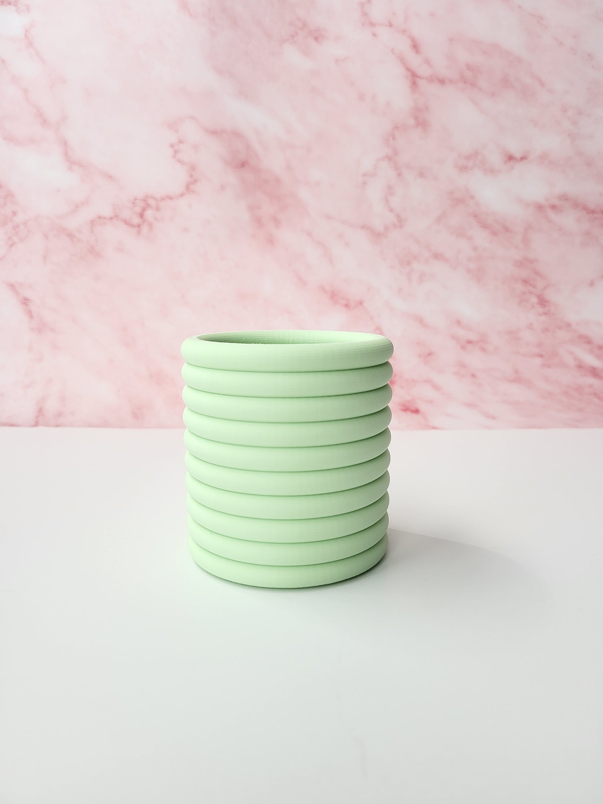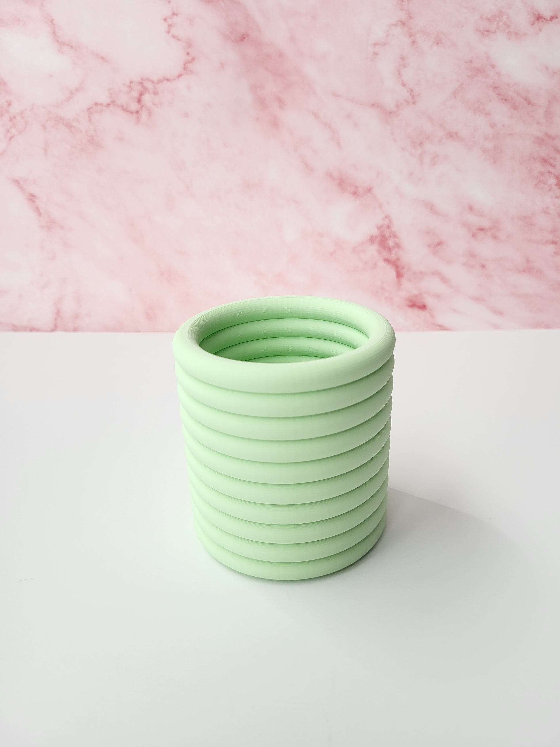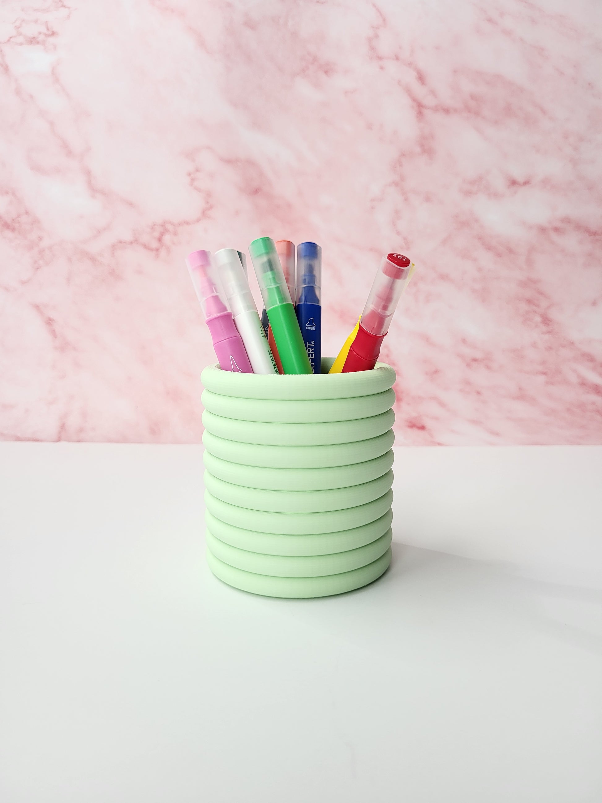 Add a pop of color and organization to your workspace with this modern bubble cup holder. Whether you use it for pens, makeup brushes, craft tools, or as a cute catch-all, its clean lines and minimalist ridged texture make it a standout on any desk, shelf, or vanity.