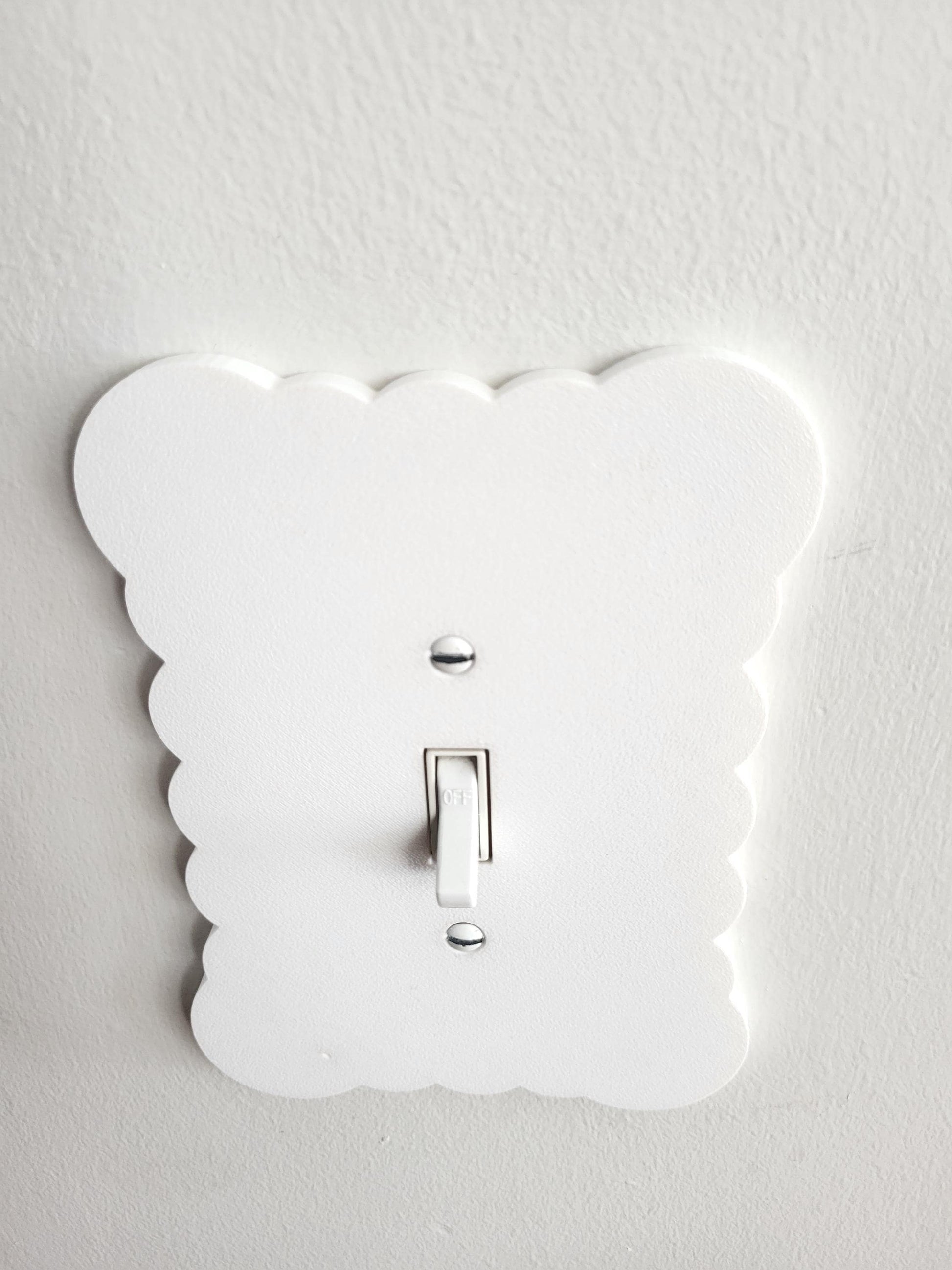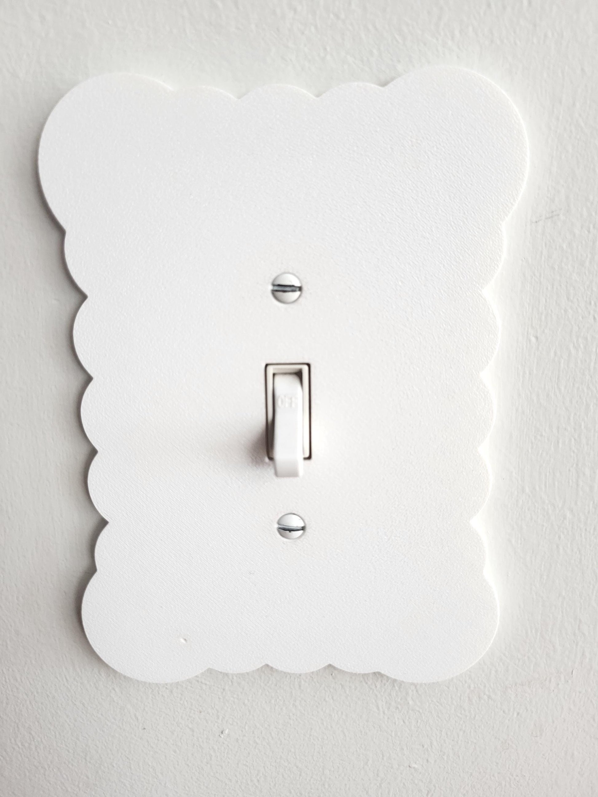 Add a touch of elegance to your walls with this beautiful scalloped edge light switch cover. Its clean and timeless design effortlessly complements any room, from living spaces to nurseries. Crafted with durable, high-quality material, this light switch plate fits standard rocker switches and is easy to install.
