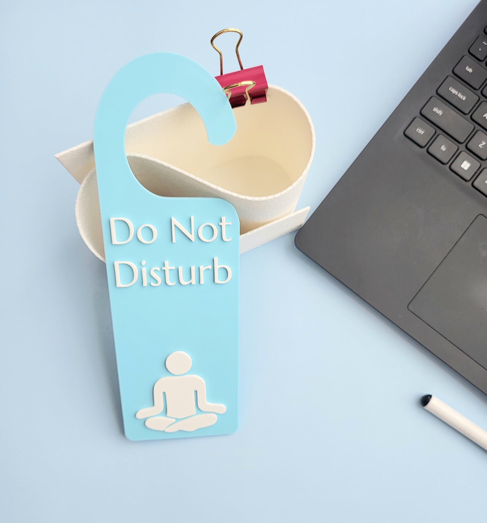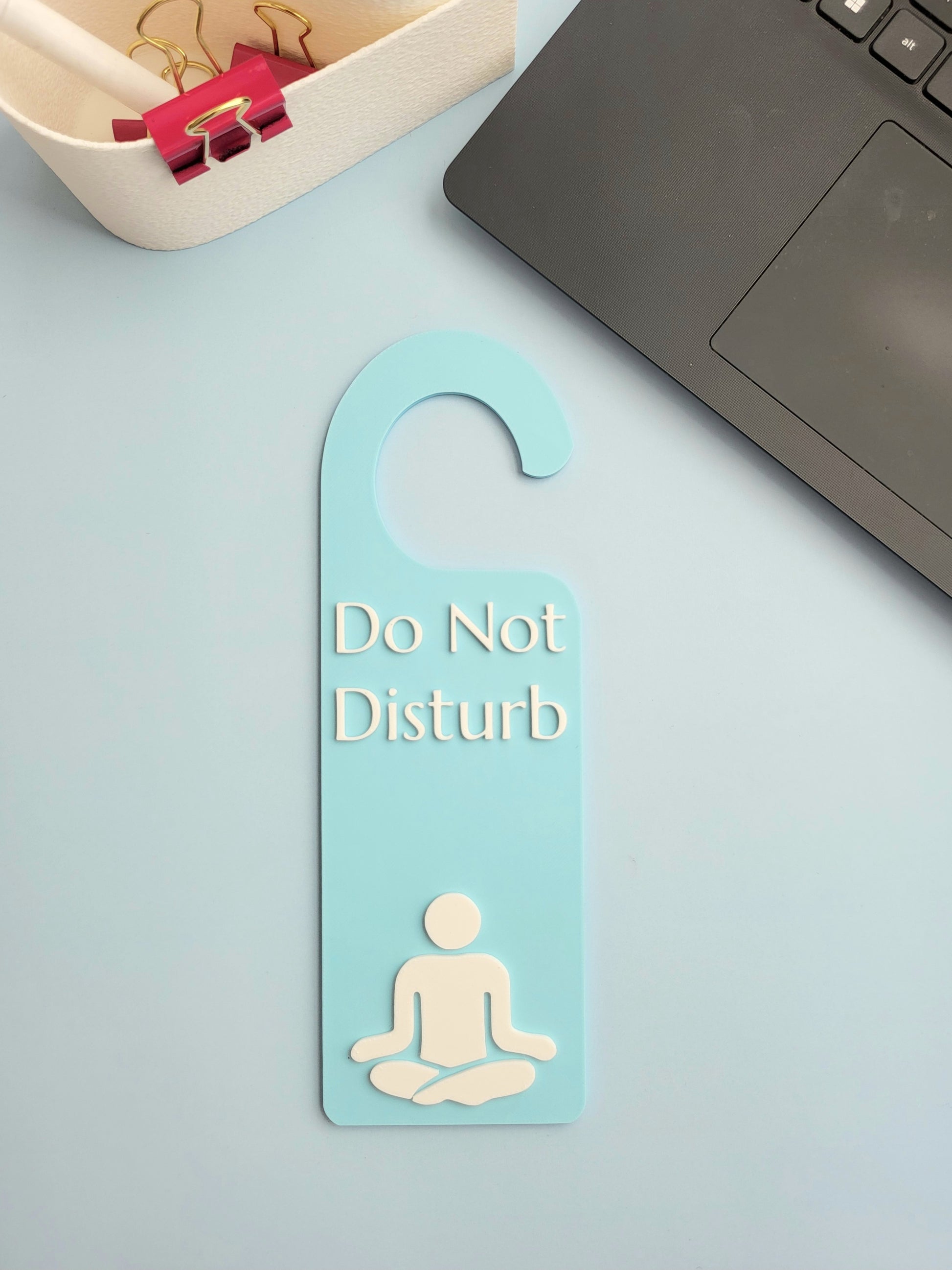 Protect your peace with this calming Do Not Disturb – Meditating in Progress door hanger. Whether you're practicing mindfulness, doing breathwork, or simply seeking a quiet moment, this sign gently signals to others that you're in your zone.