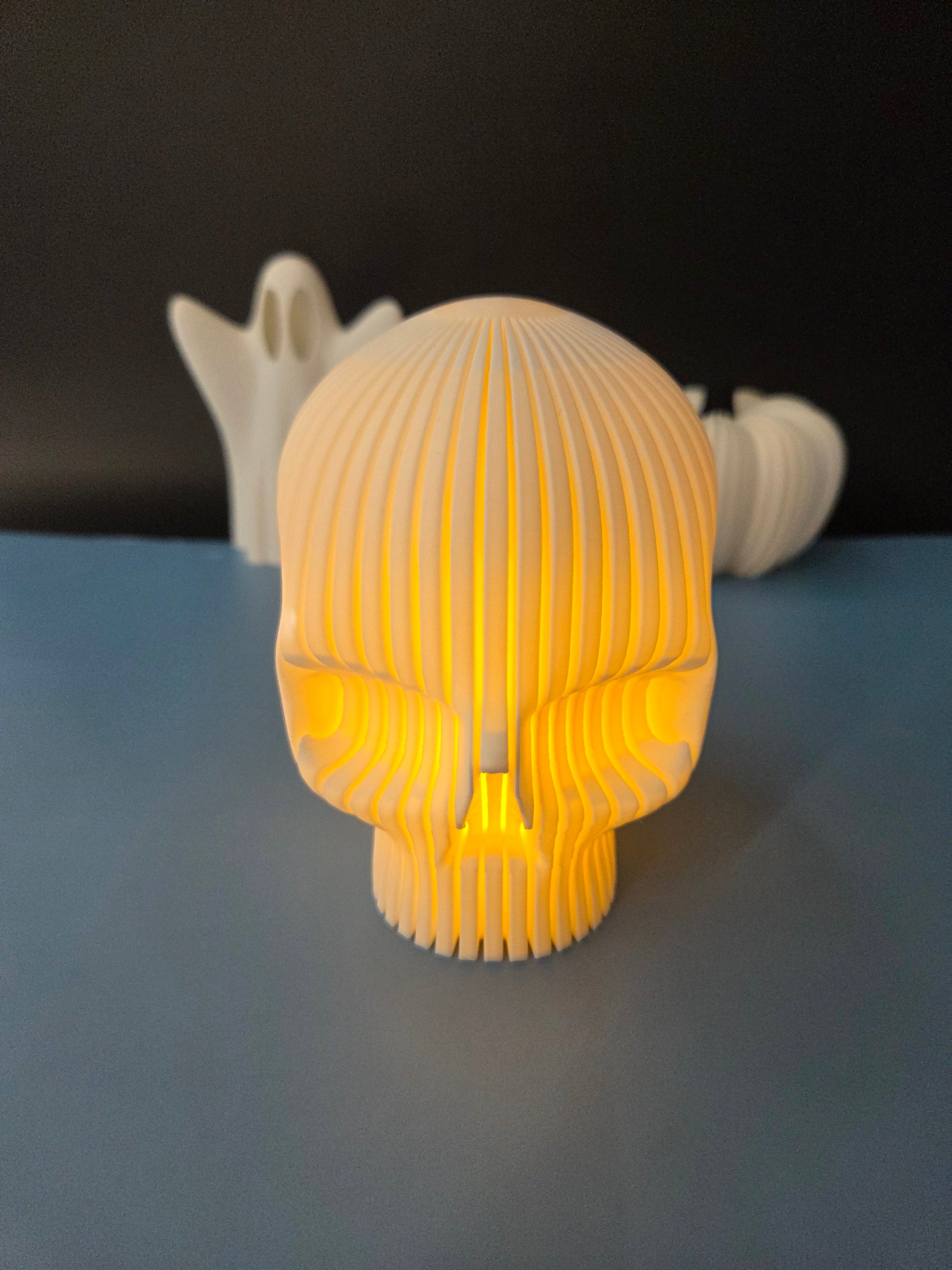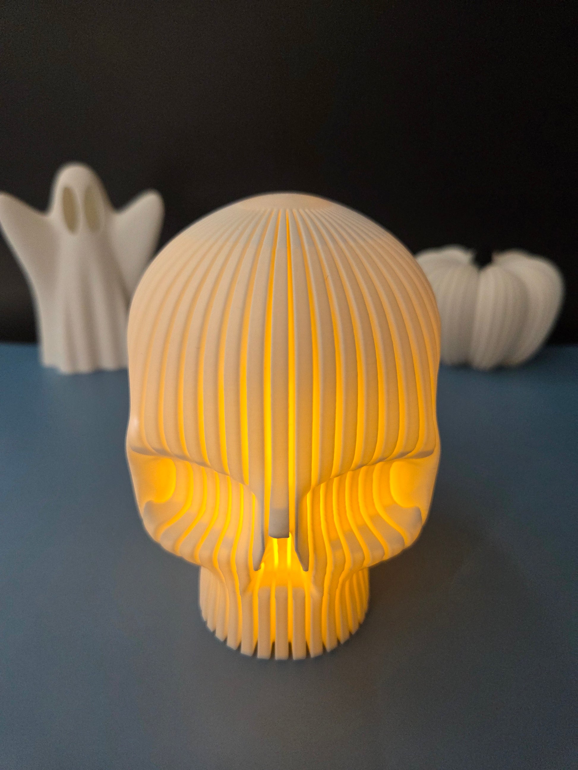 Create the perfect spooky atmosphere with this skull-shaped LED tea light candle holder π. Designed with a modern ribbed style, it glows beautifully when placed over an LED tea light (LED not included), making it the perfect accent for Halloween parties, haunted houses, gothic home decor, or eerie table centerpieces.