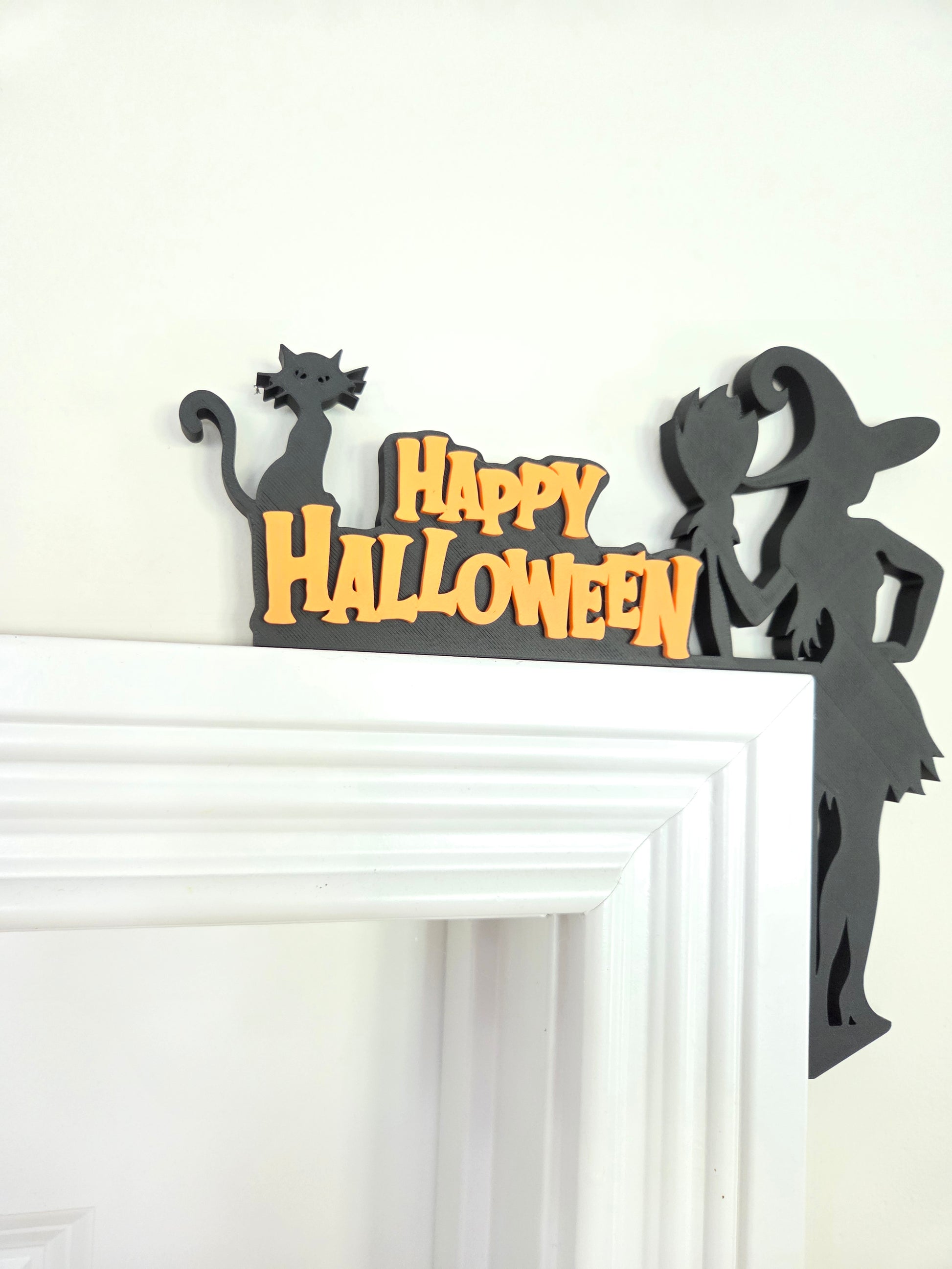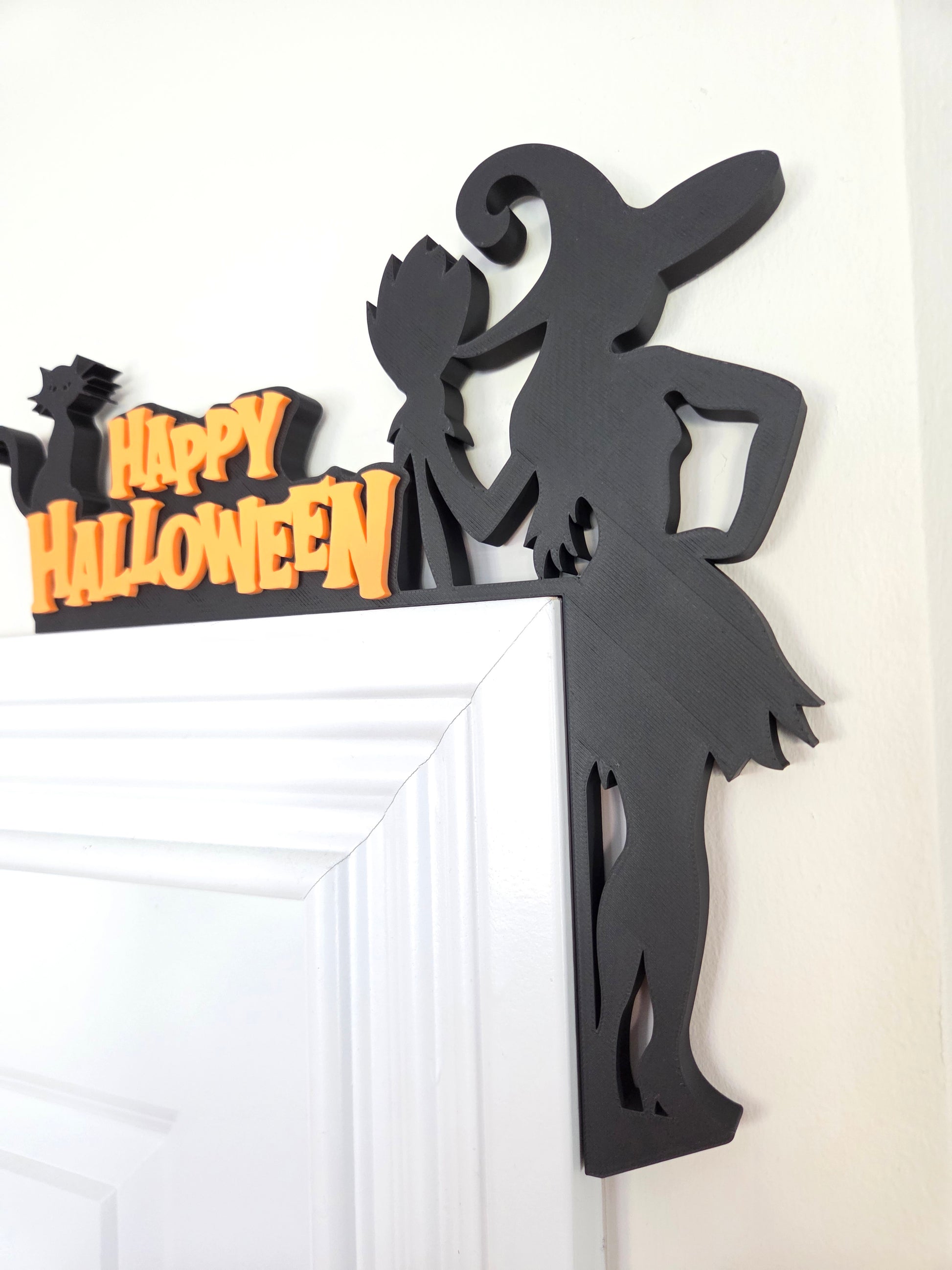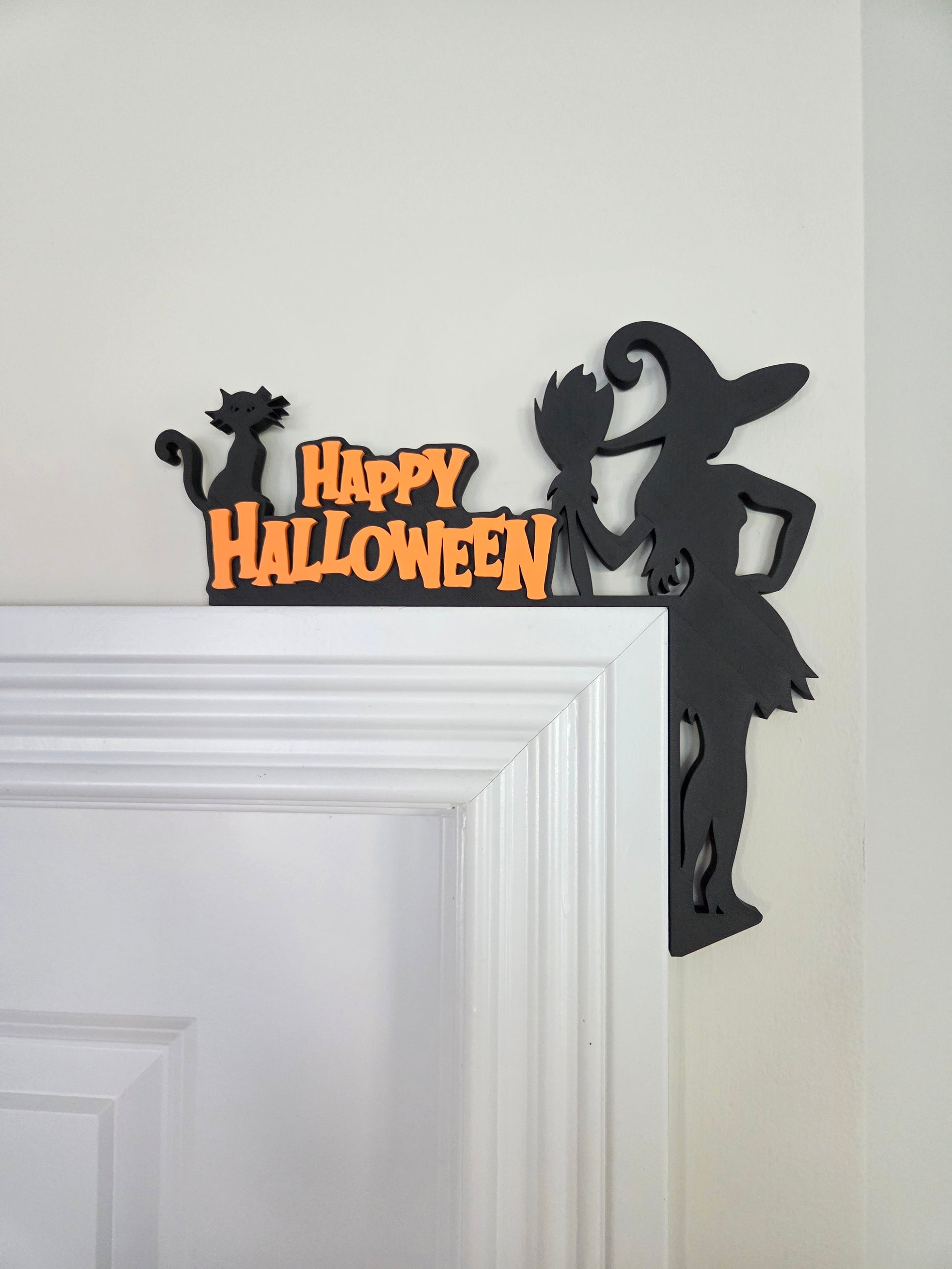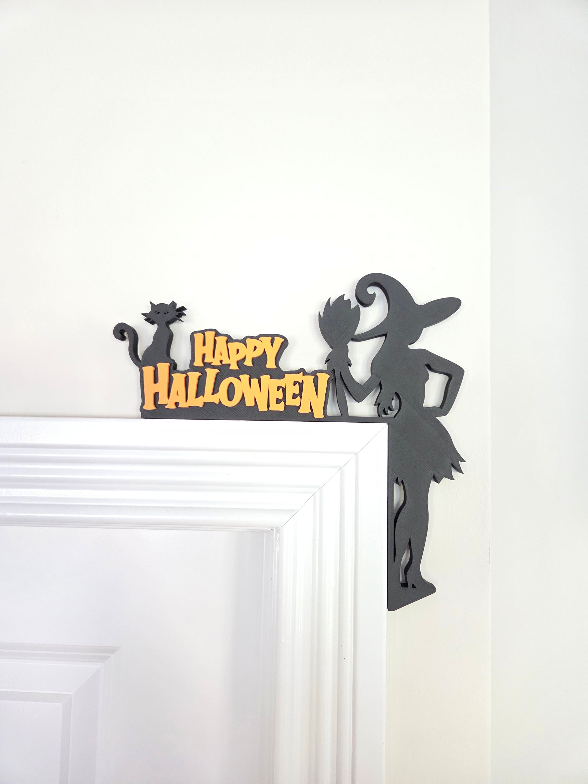 Bring spooky charm to your home this Halloween with this whimsical door corner sign featuring a sassy witch, her broom, and a black cat π§βοΈπβ¬. Perfect for adding festive flair to your door frames without nails or damage, this lightweight piece slots easily onto any standard door or window frame, making decorating fun and effortless.