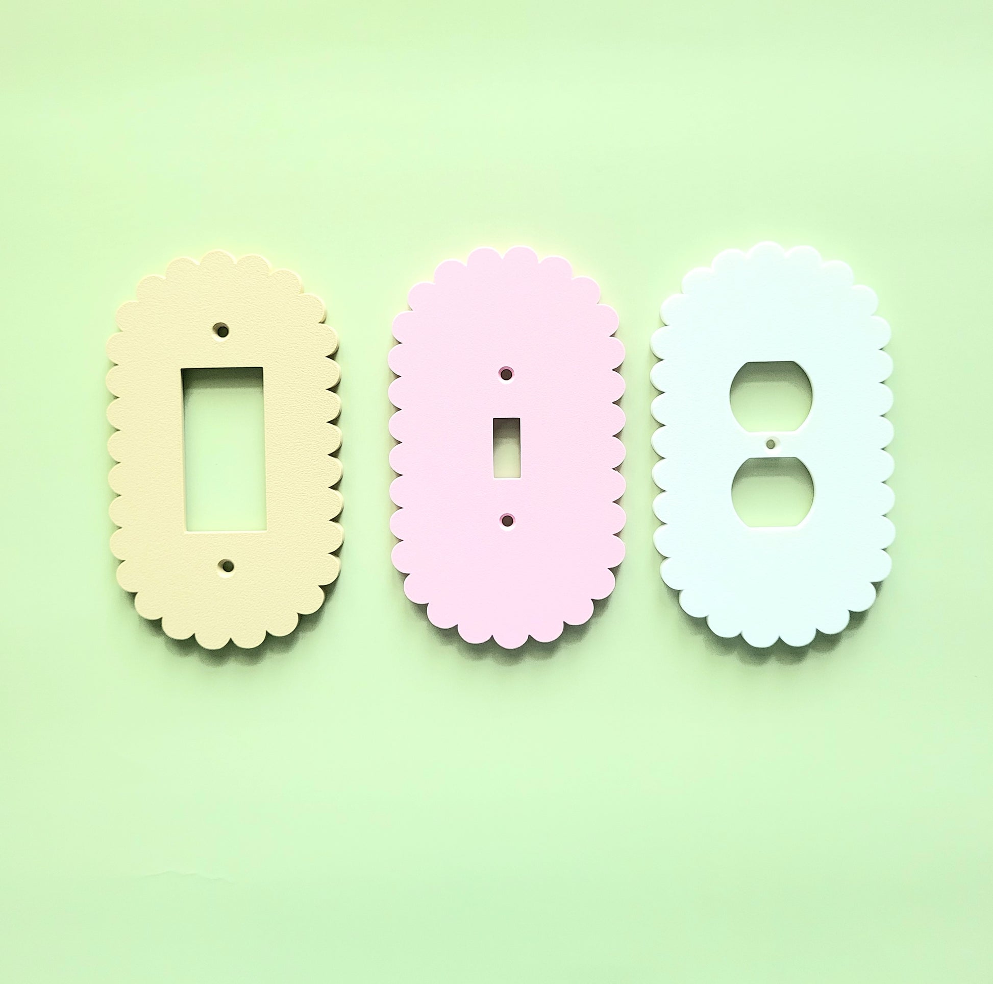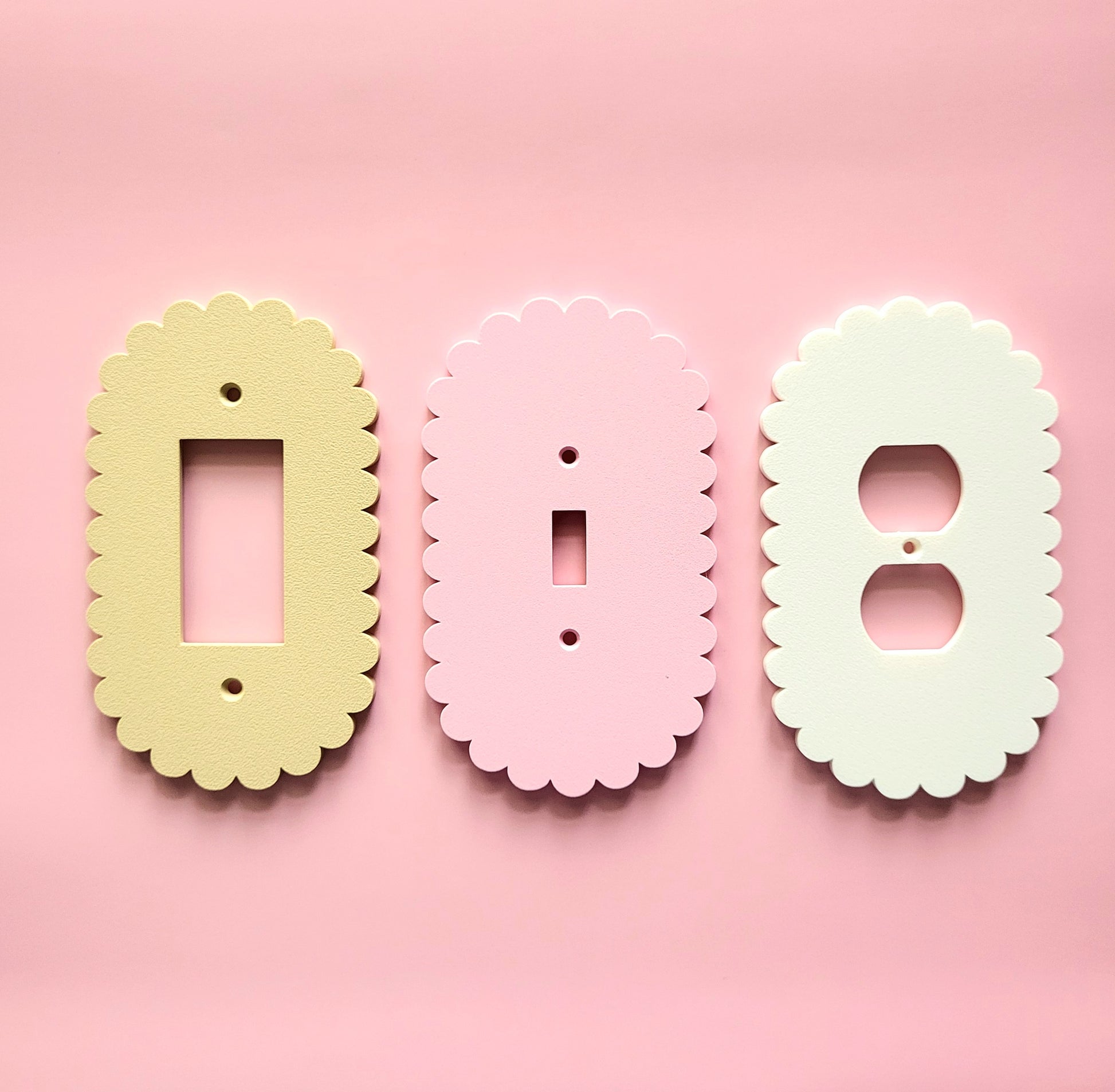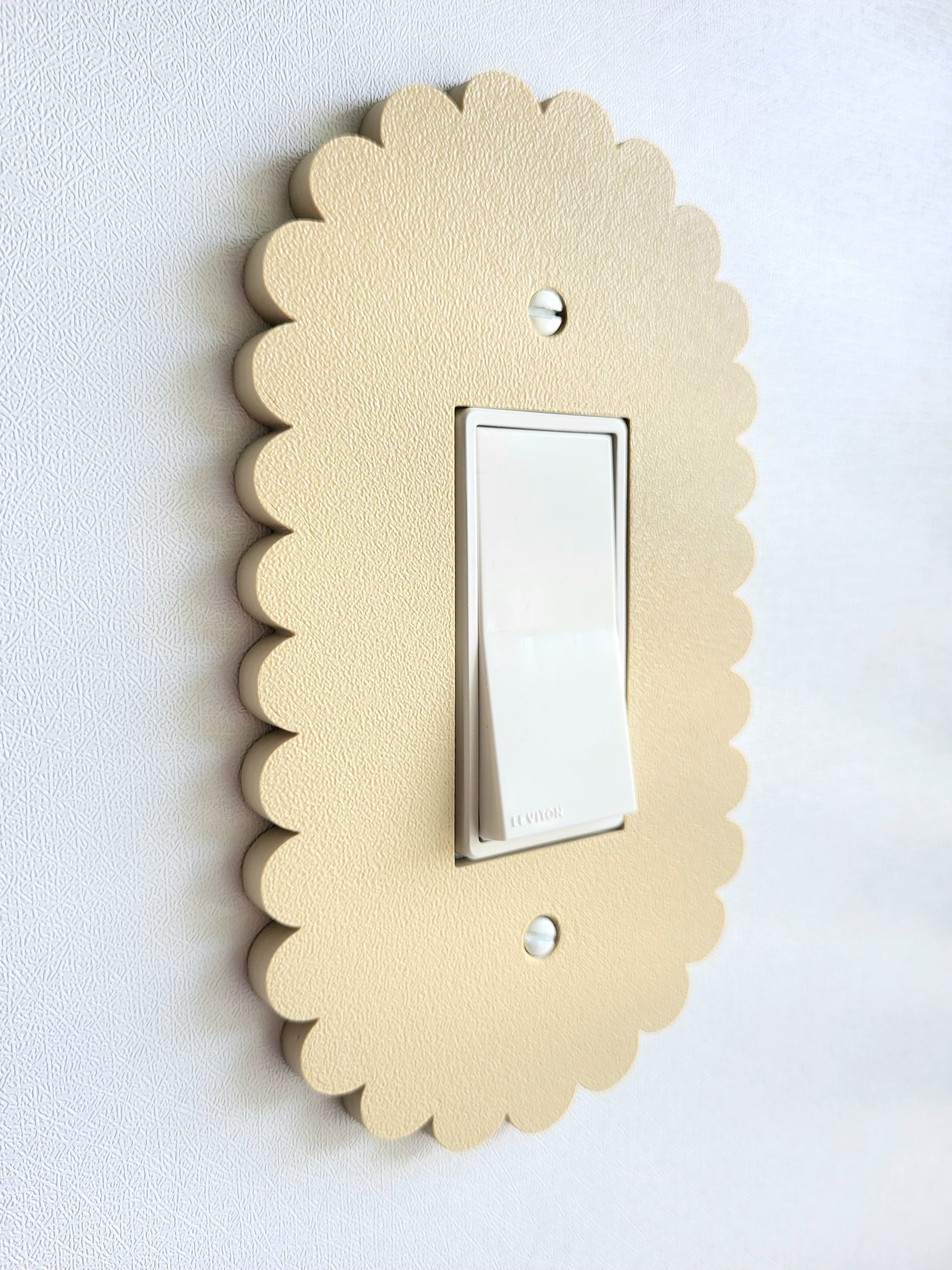 Bring a soft and playful charm to your walls with this oval scalloped light switch cover, designed to add a whimsical touch to any room. This versatile piece blends beautifully into children's rooms, colorful home offices, and pastel-themed spaces. Whether youβre refreshing a nursery or upgrading your hallway, this light plate adds the finishing touch.