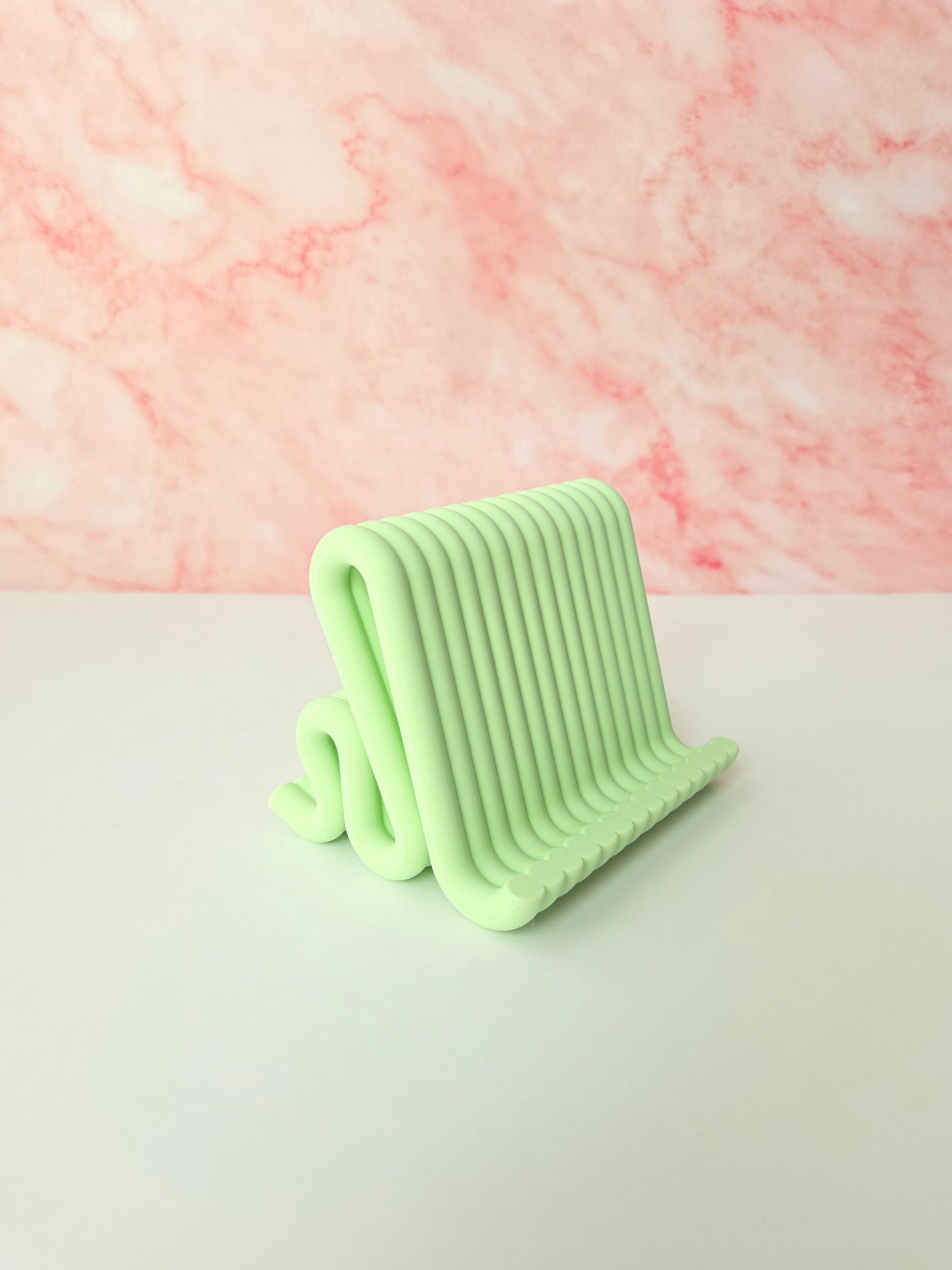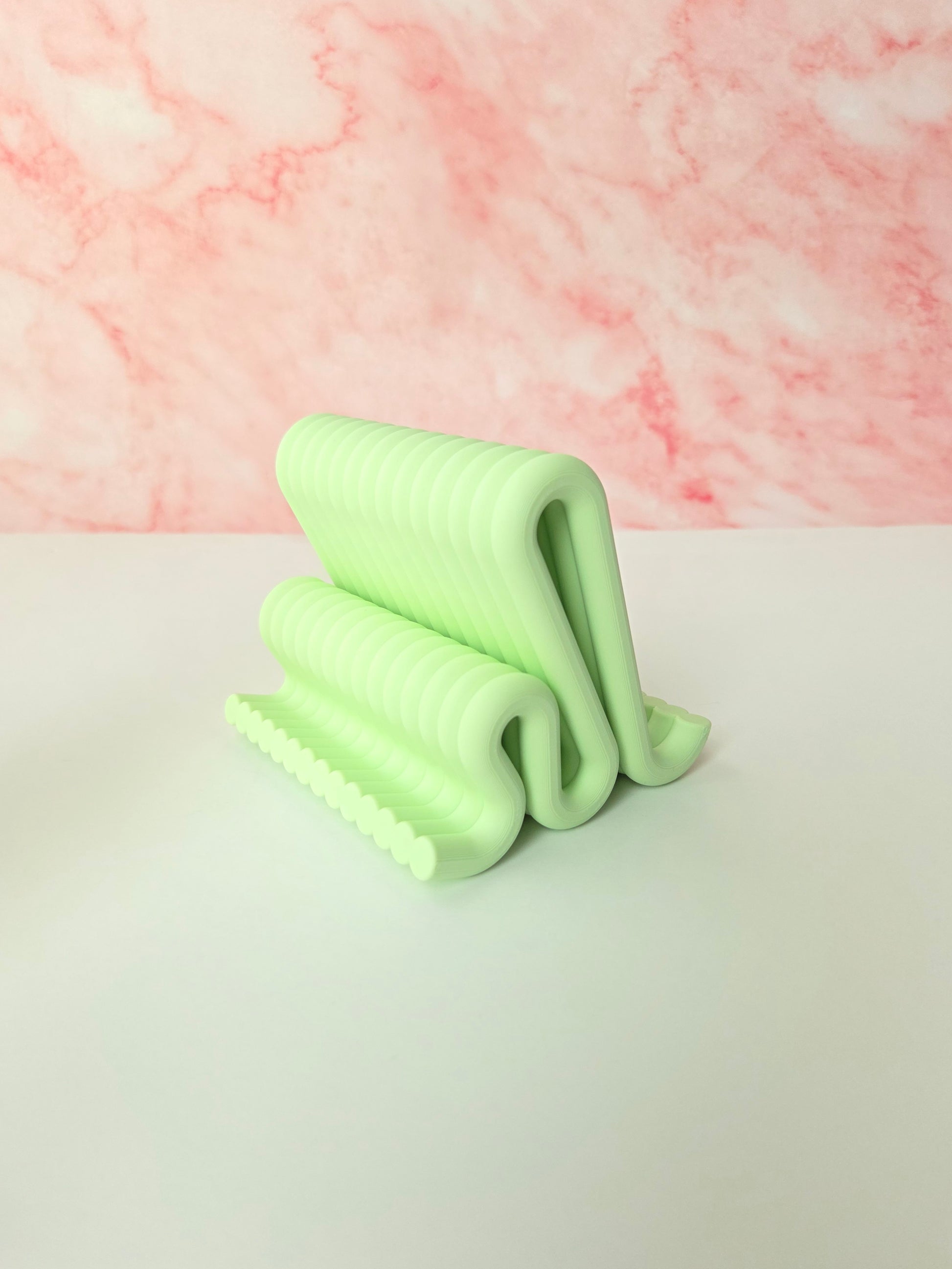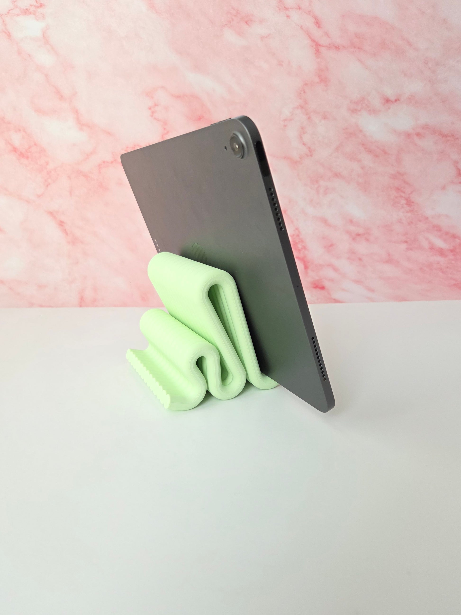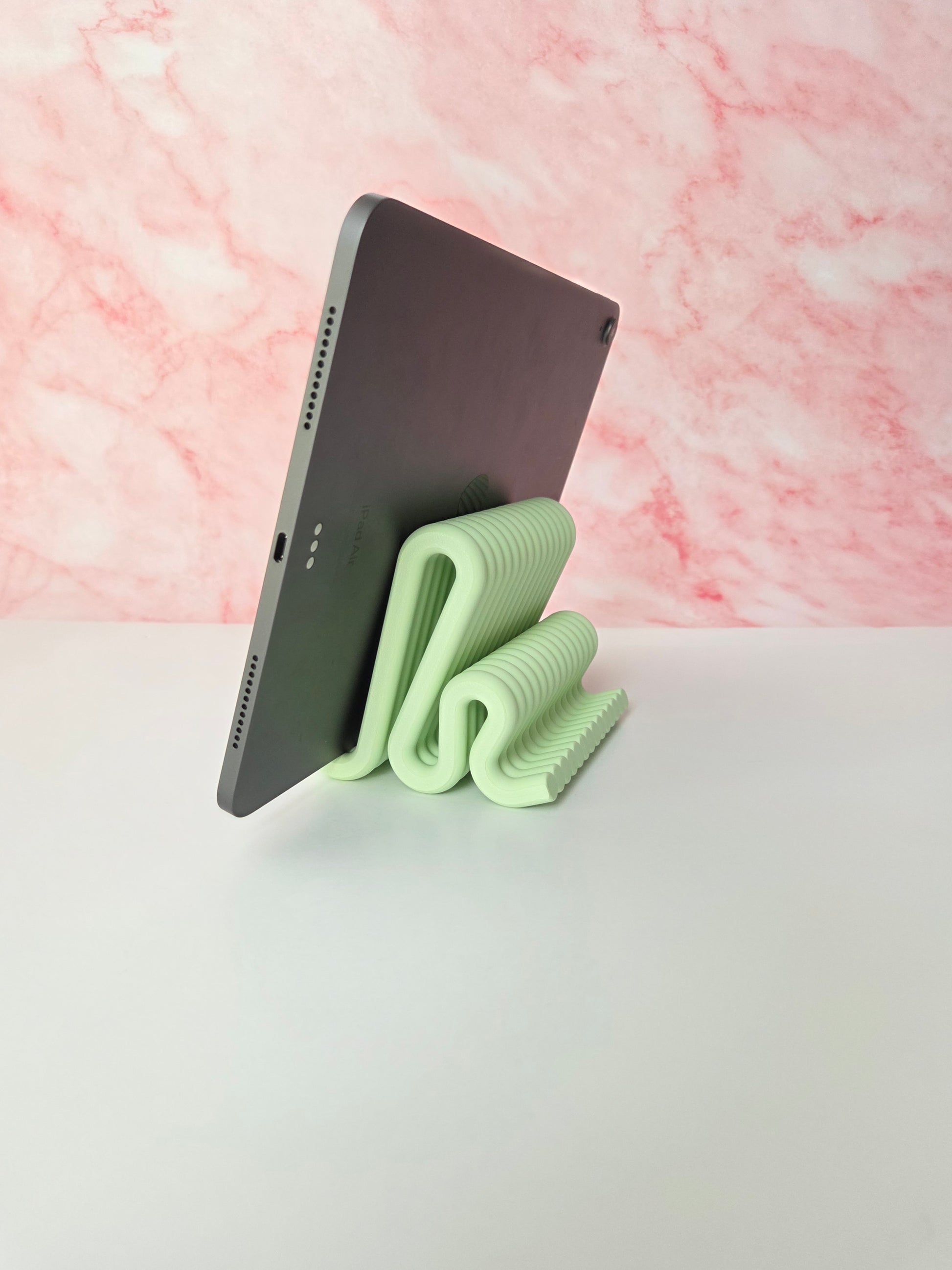 Add a stylish and functional touch to your workspace with this sculptural wavy tablet stand, designed and handcrafted by me to elevate your desk setup while keeping your device secure. Crafted in a unique pastel green wave form, this stand blends modern aesthetics with solid functionality. Matching phone stand and pen holder also available for a cohesive and elegant desk set π§©β¨