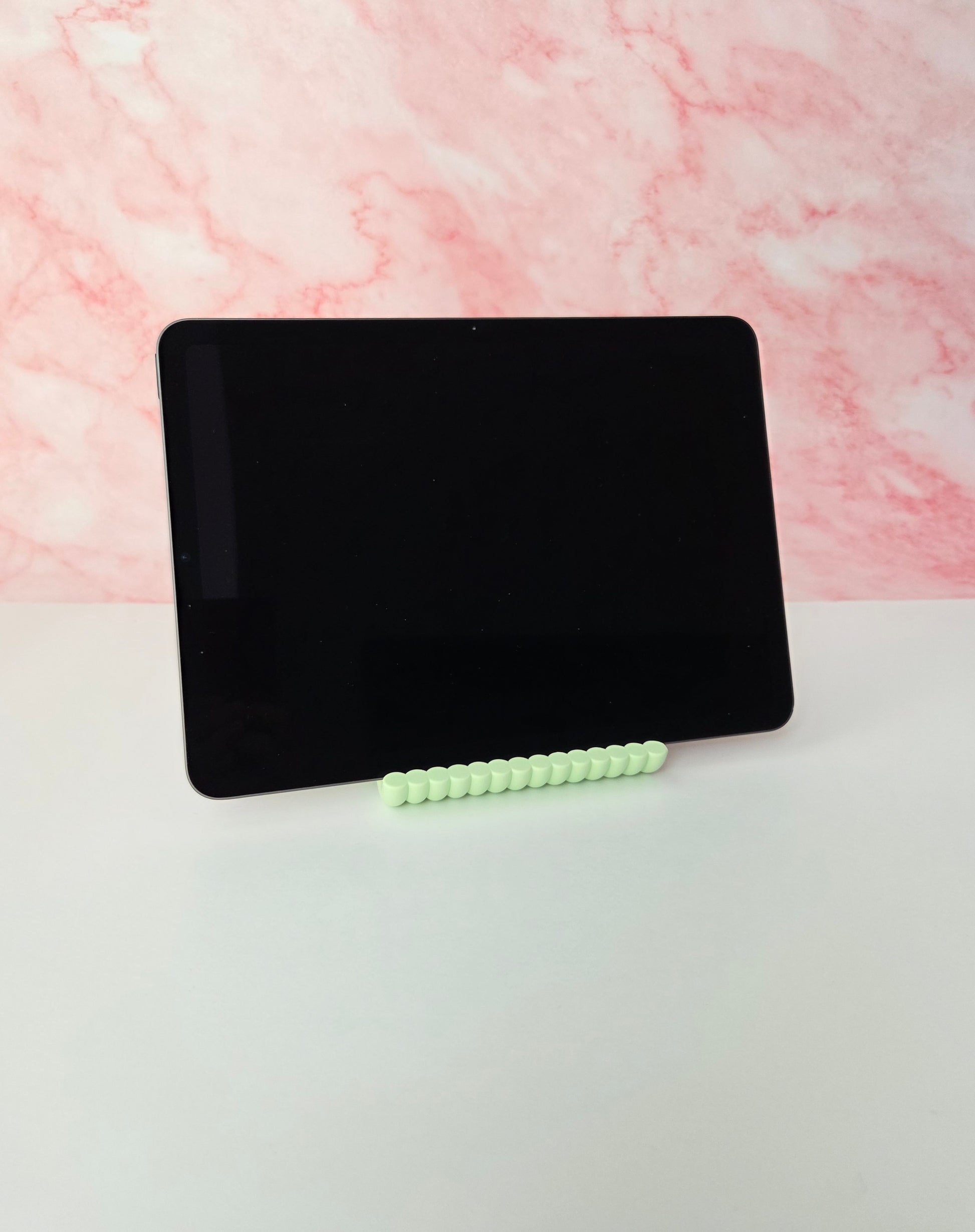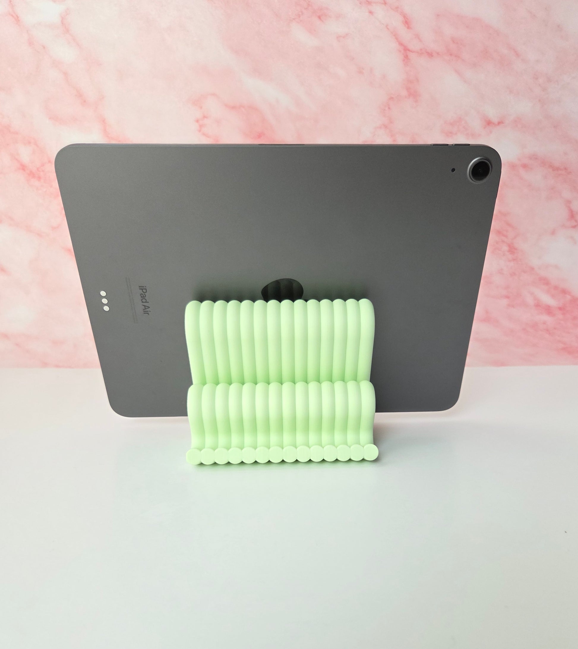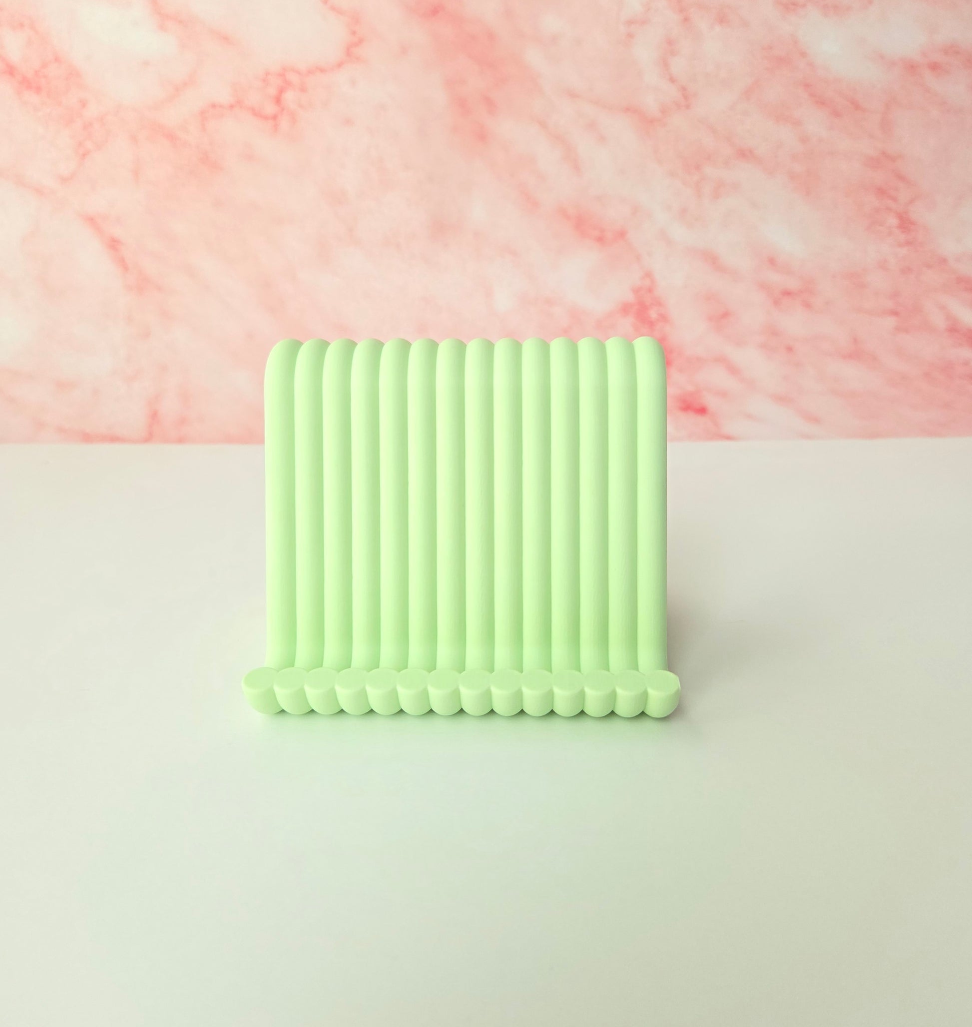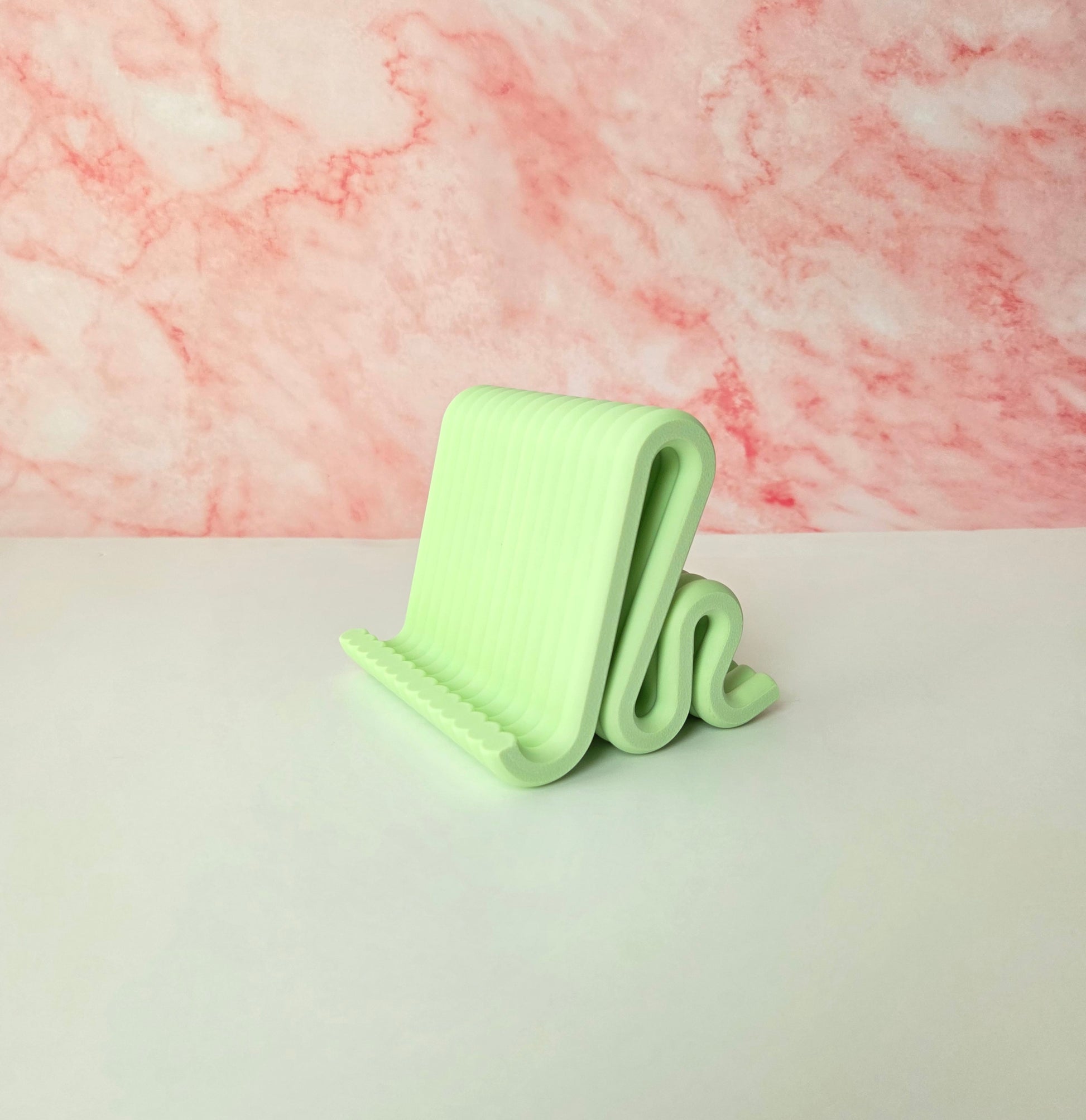 Add a stylish and functional touch to your workspace with this sculptural wavy tablet stand, designed and handcrafted by me to elevate your desk setup while keeping your device secure. Crafted in a unique pastel green wave form, this stand blends modern aesthetics with solid functionality. Matching phone stand and pen holder also available for a cohesive and elegant desk set π§©β¨
