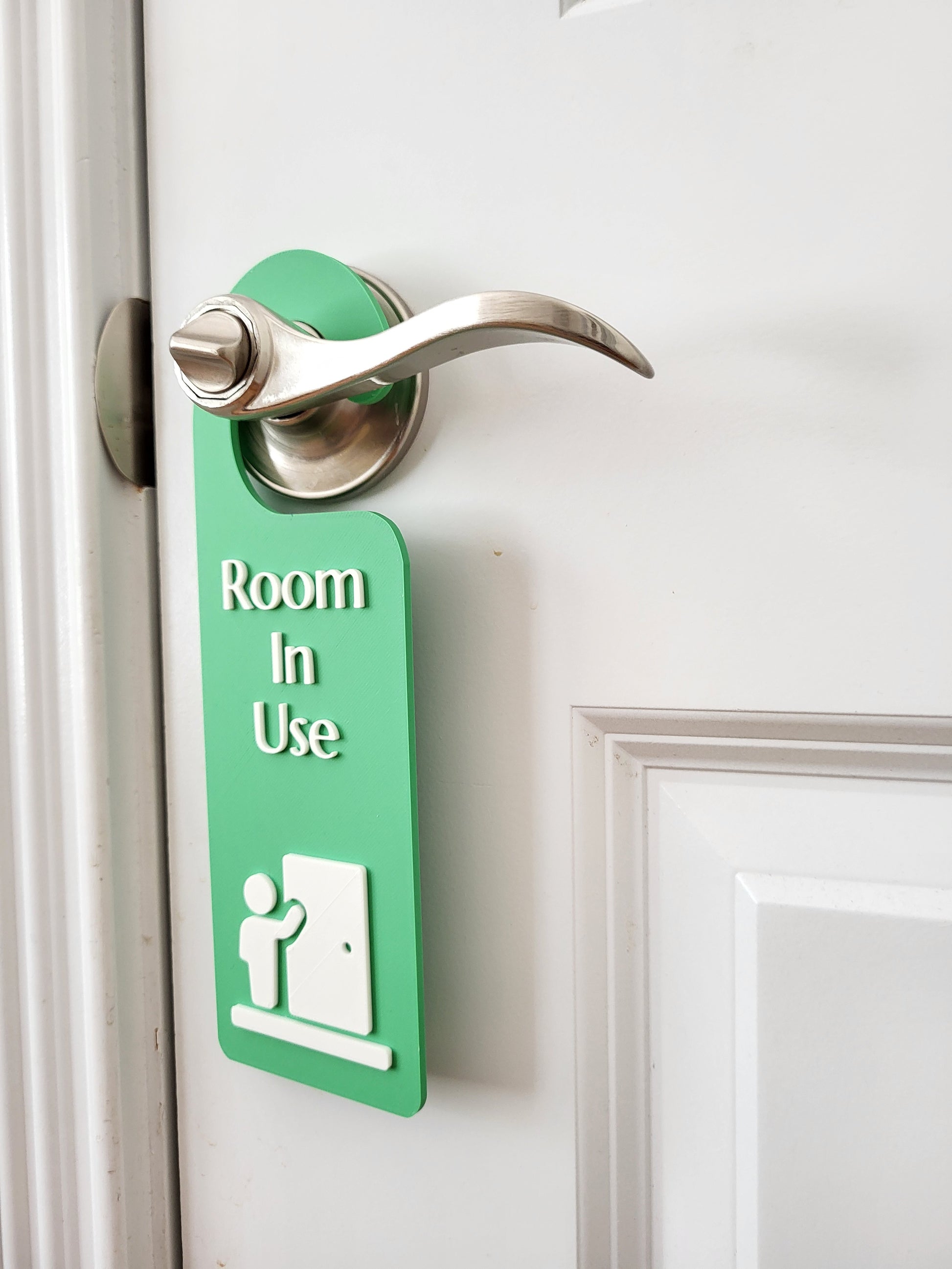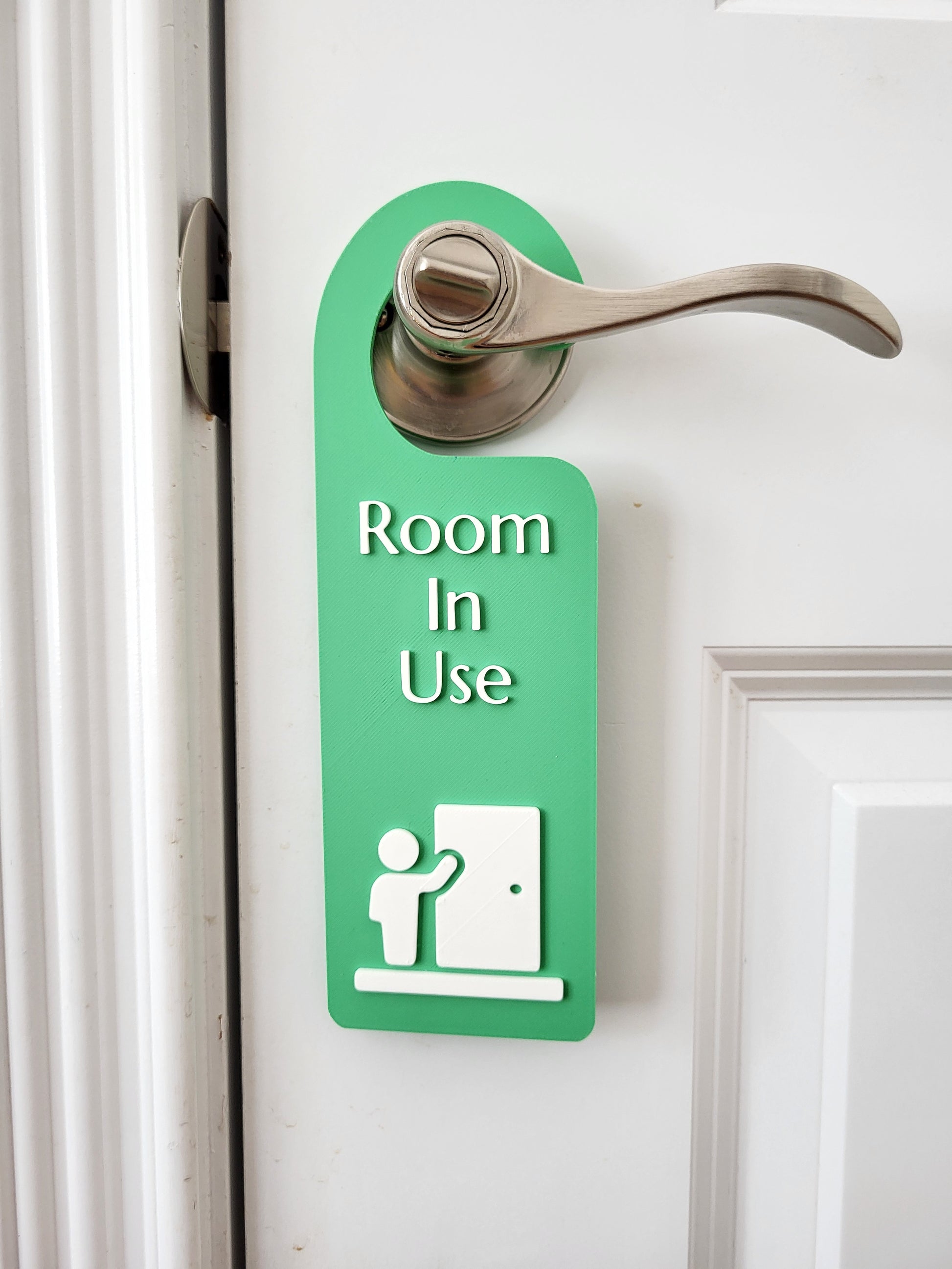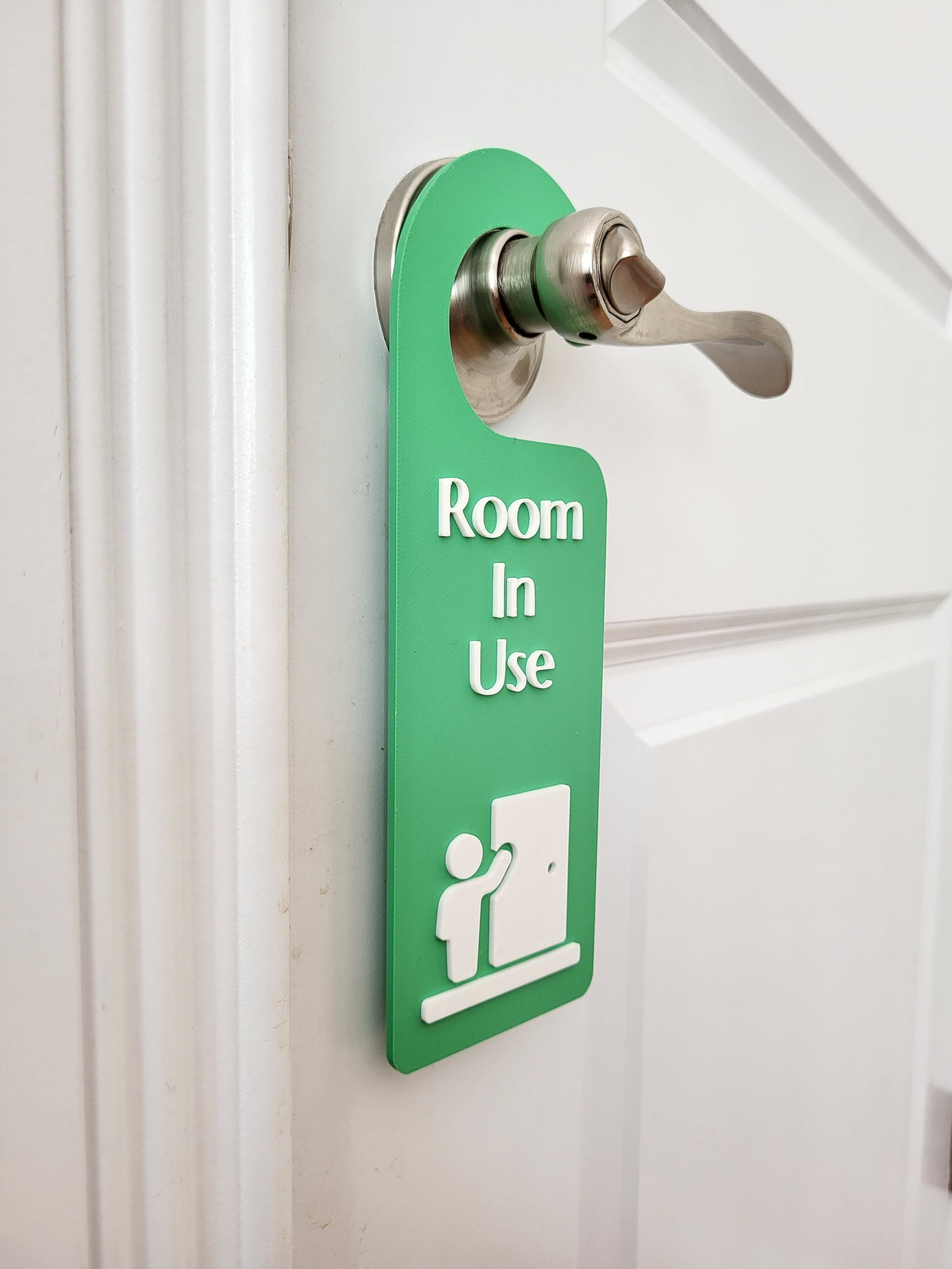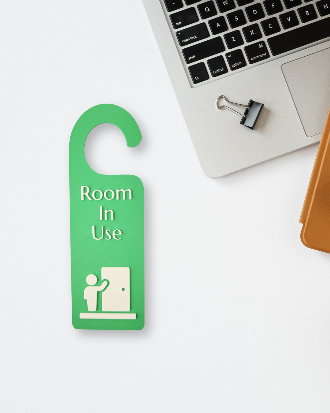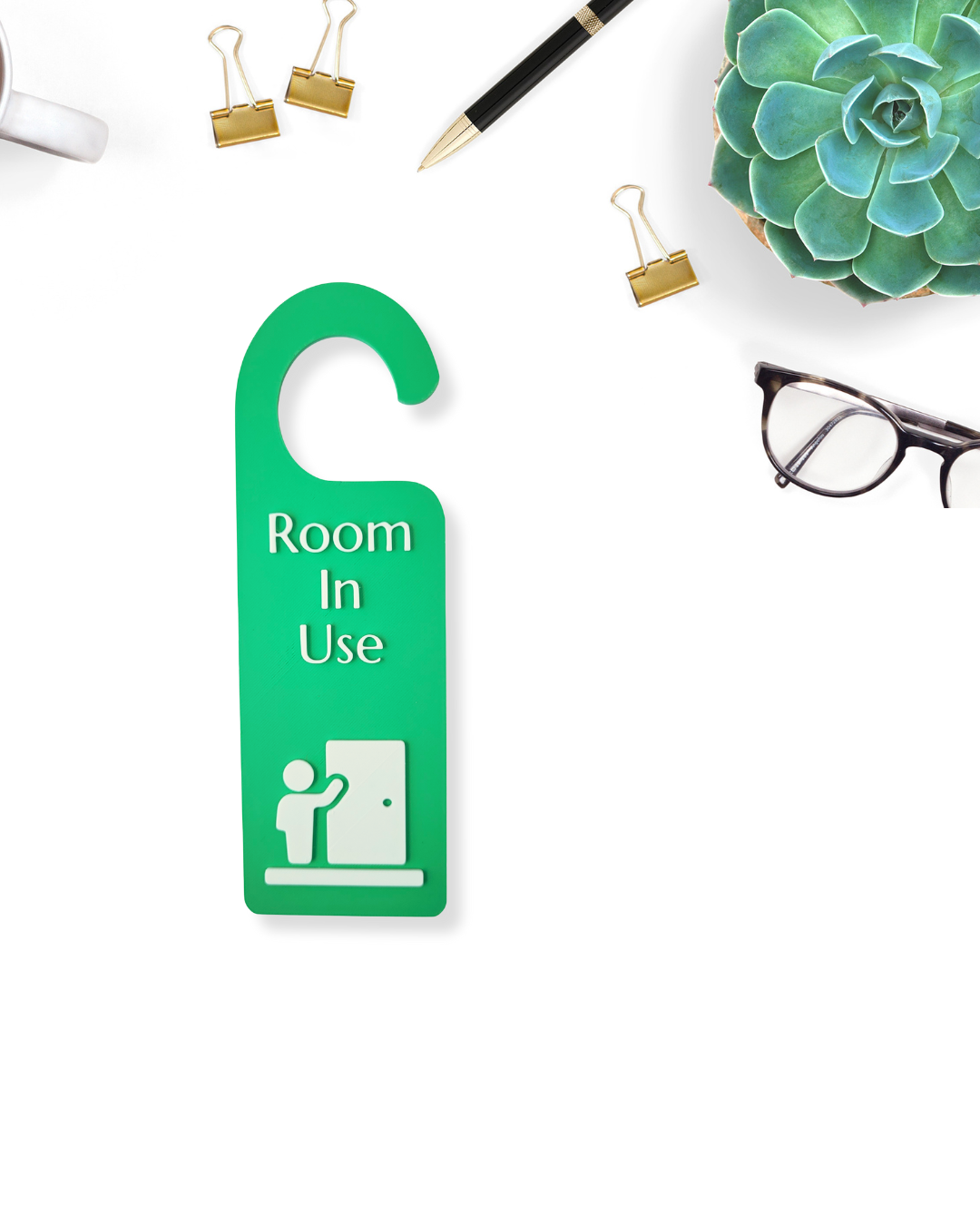 Politely set boundaries with this Room In Use door hanger sign—perfect for offices, home workspaces, therapy rooms, or shared environments. Whether you're in a session, hosting a meeting, or need uninterrupted focus time, this door sign communicates clearly without saying a word.