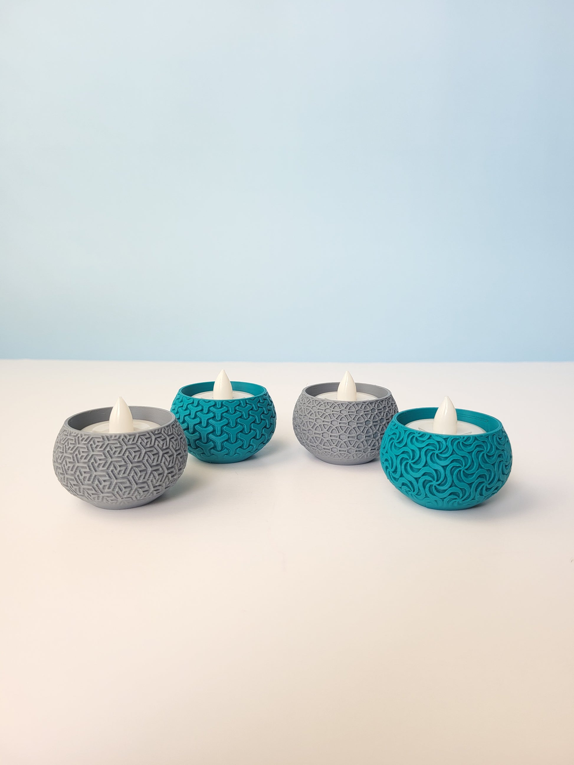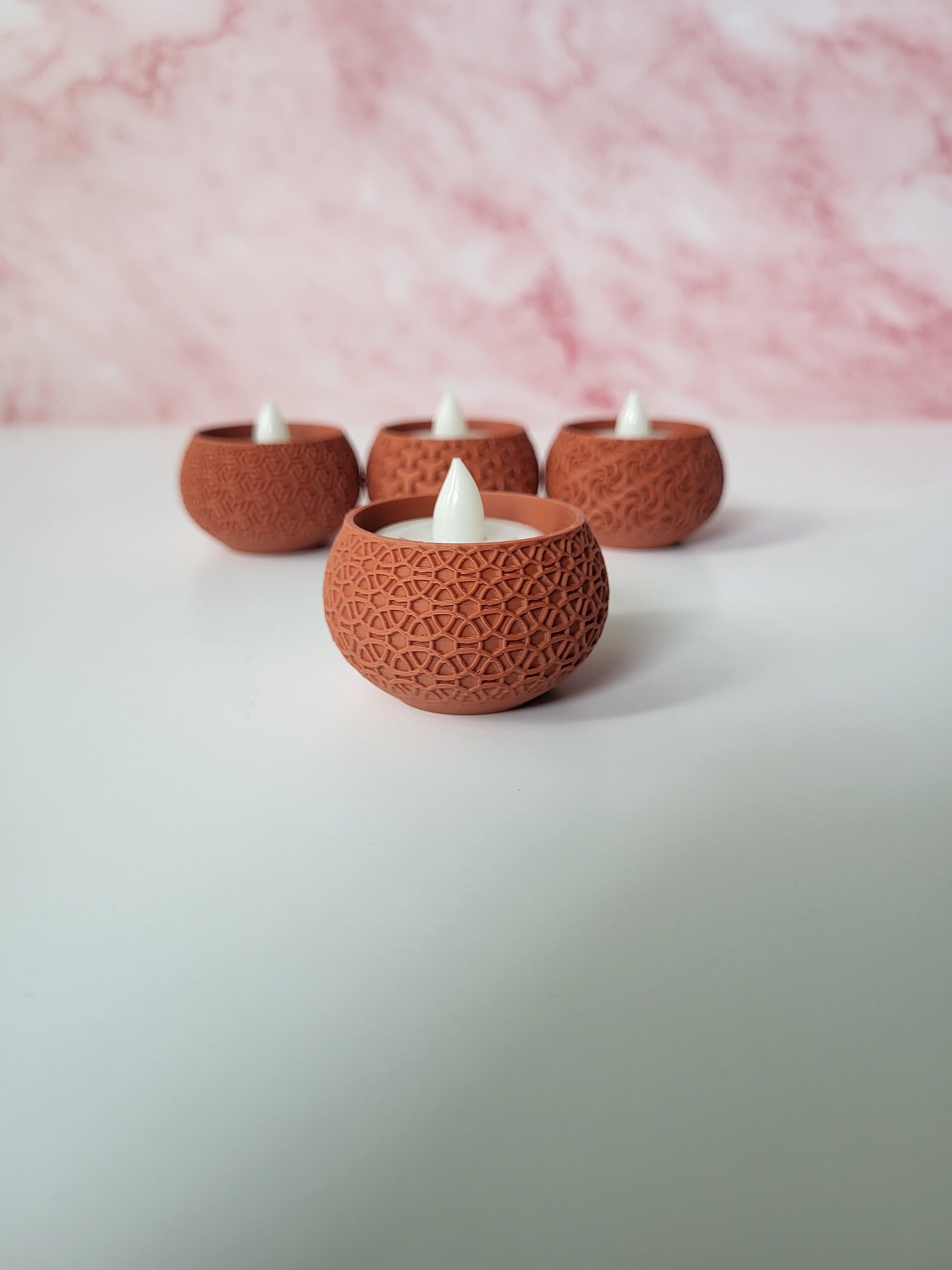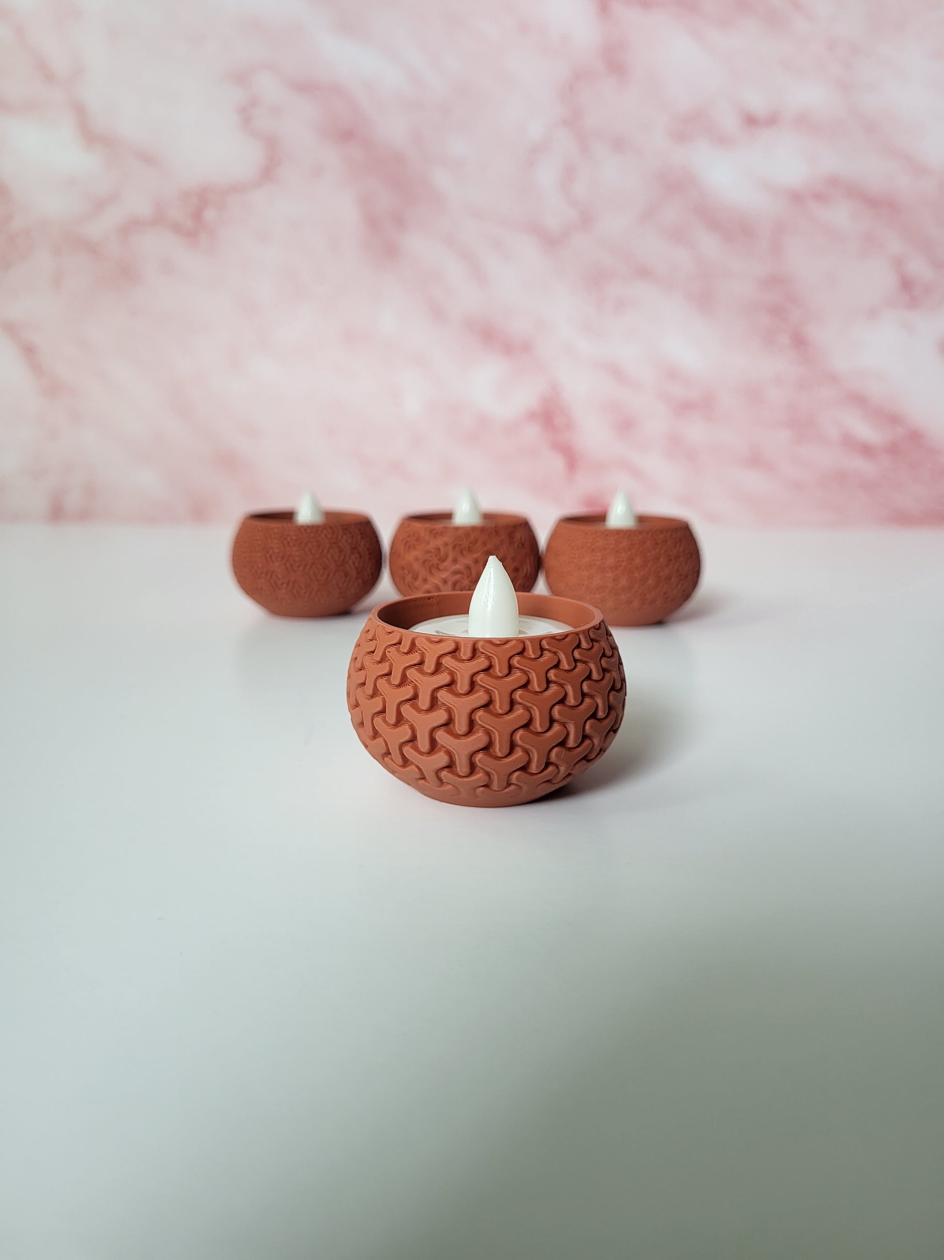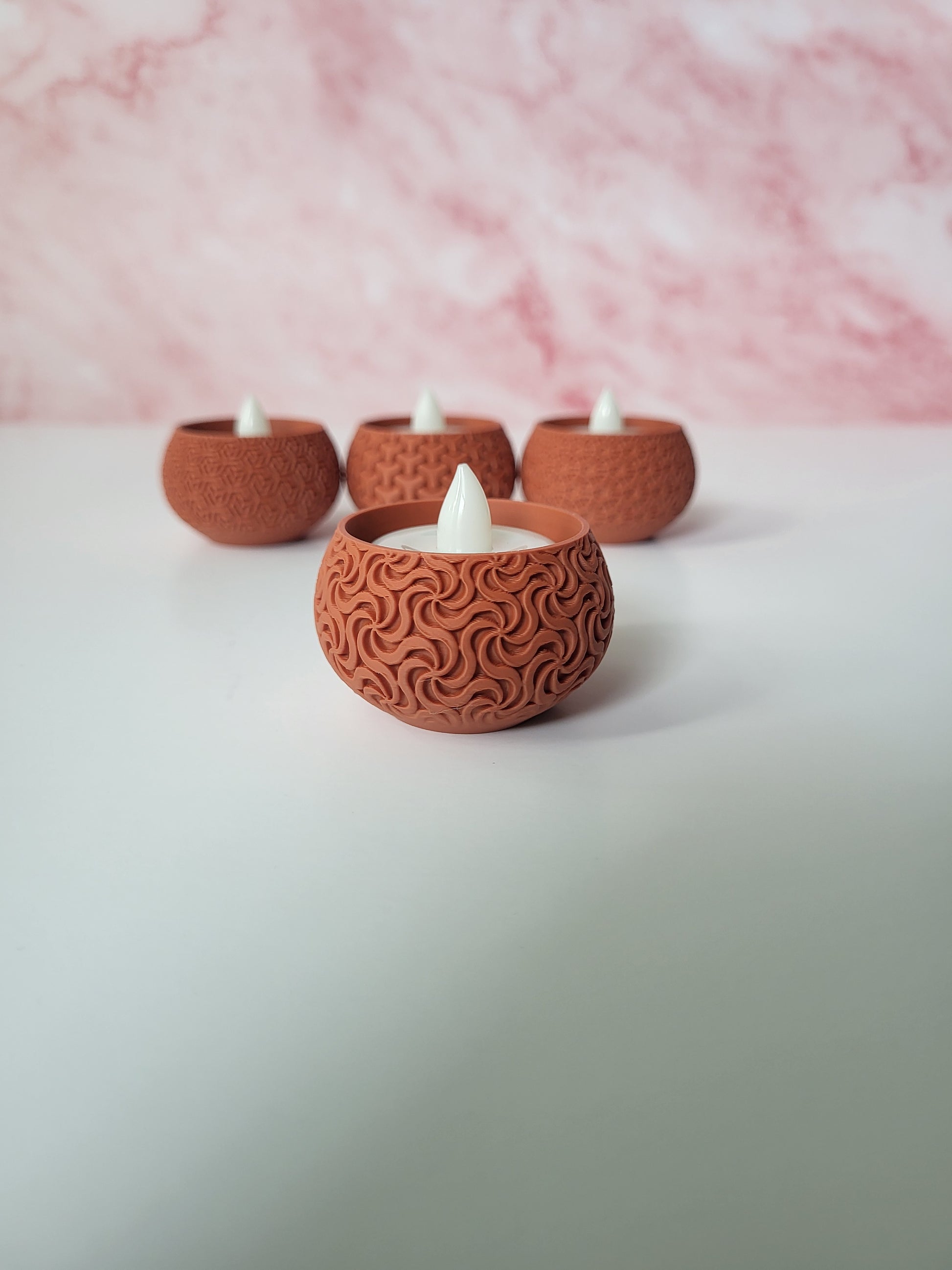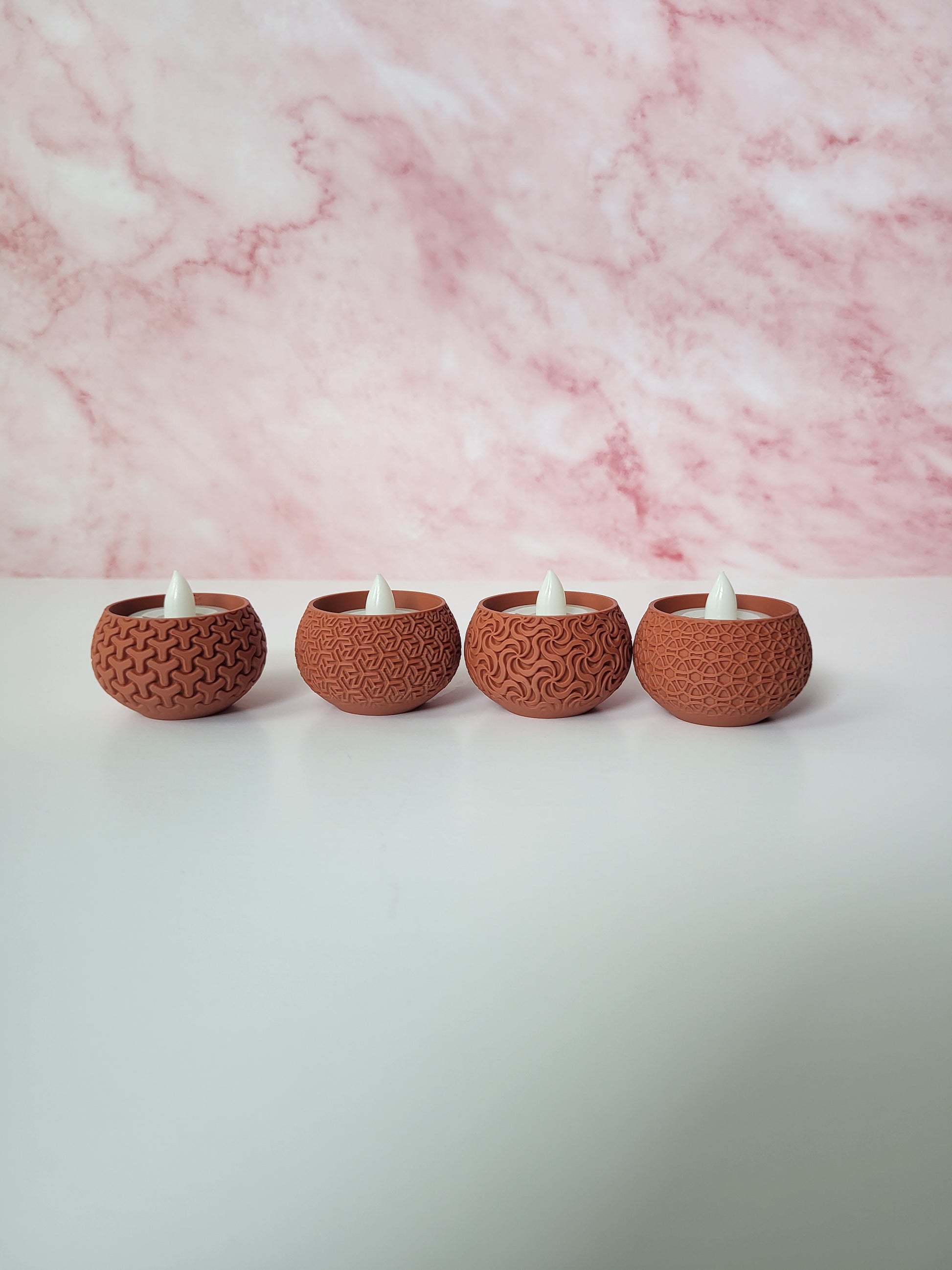Elevate your space with this set of 4 LED tea light candle holders, each featuring a unique textured surface and elegant round shape. Designed for flameless ambiance, these holders bring cozy warmth to your home without the worry of open flames.