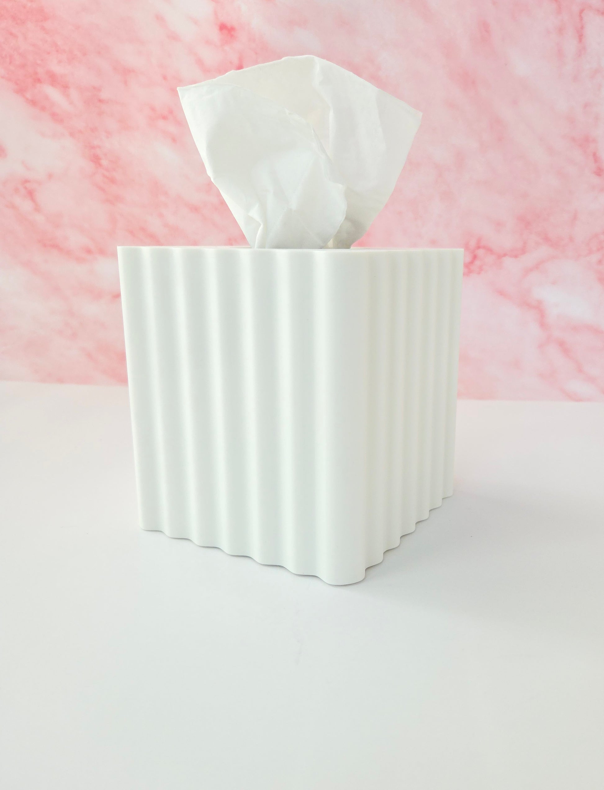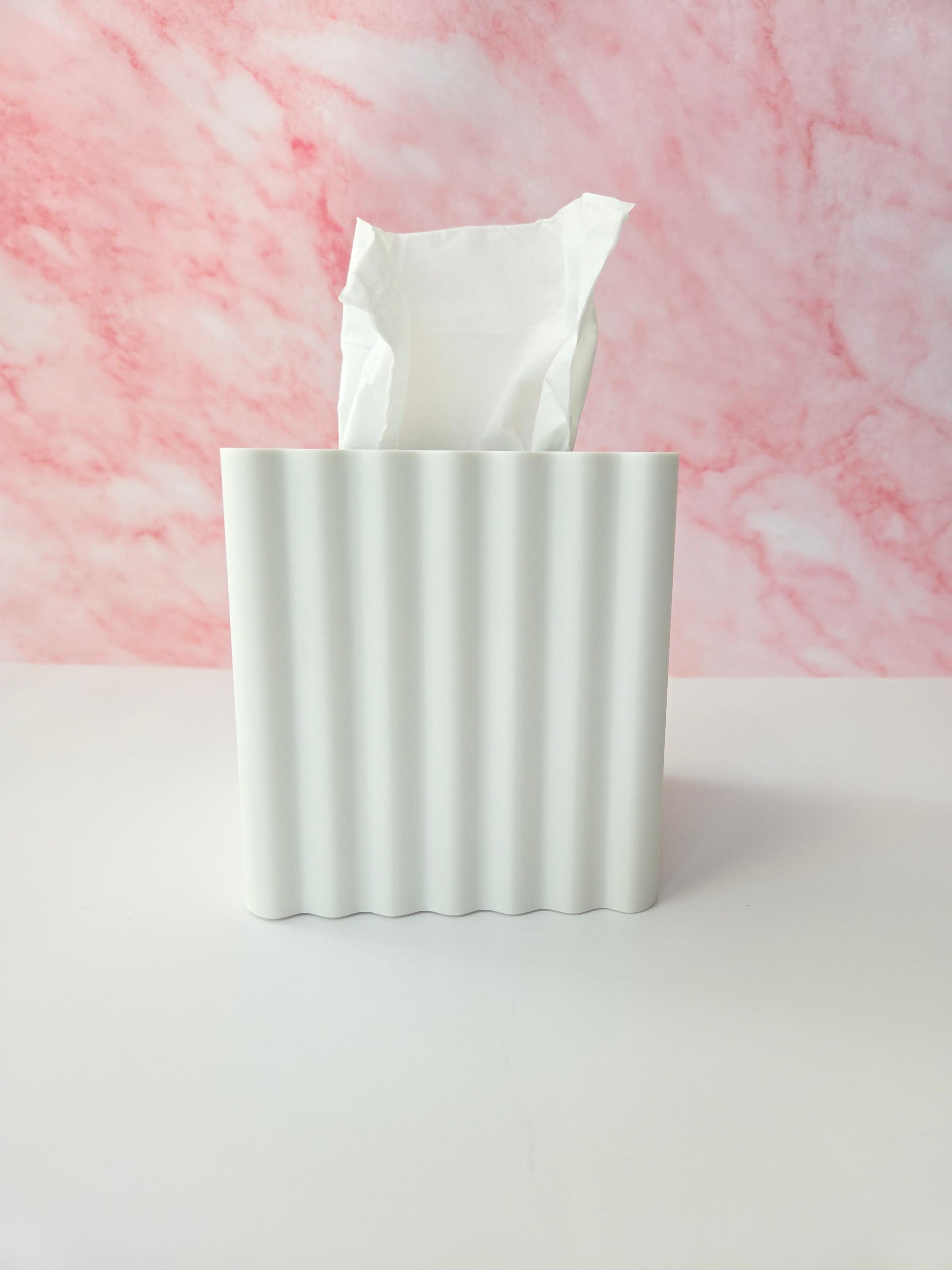Elevate your space with this modern ribbed tissue box cover, designed to bring style and function to your home or office. Made in over 25 colors, this cover is a perfect way to hide standard tissue boxes and match your décor.